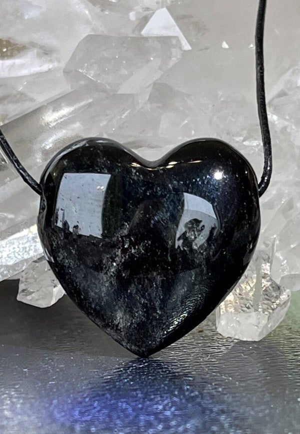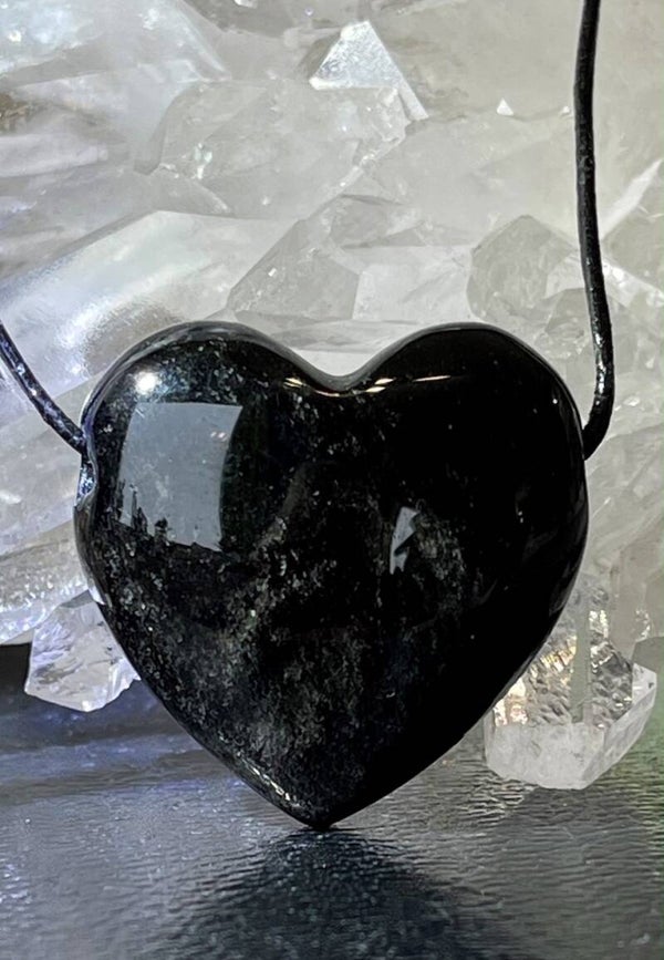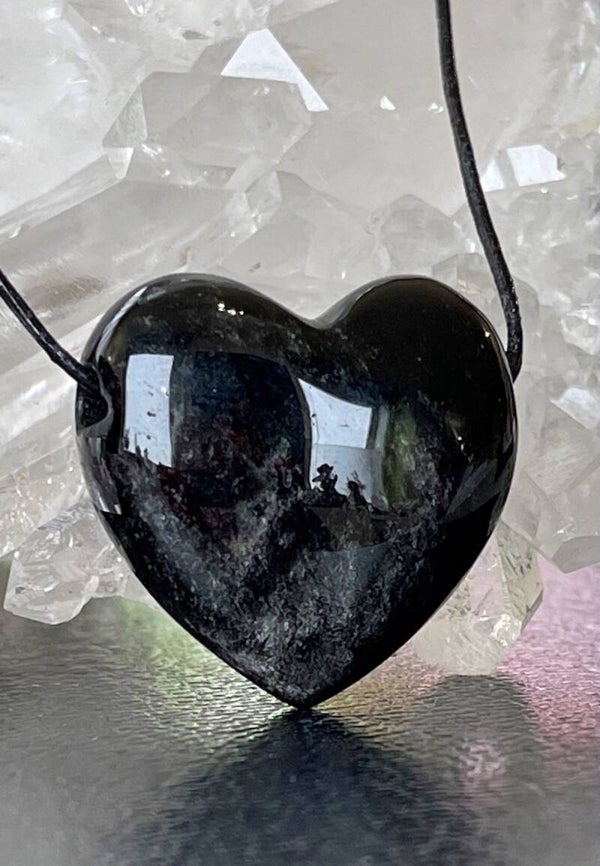 Zilverobsidiaan hartje doorboorde hanger, met veter