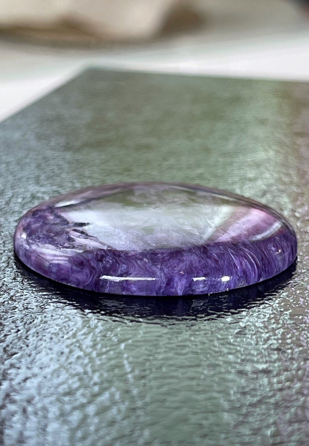 Mooie Charoiet edelsteen cabochon rond met vlakke achterkant, groot