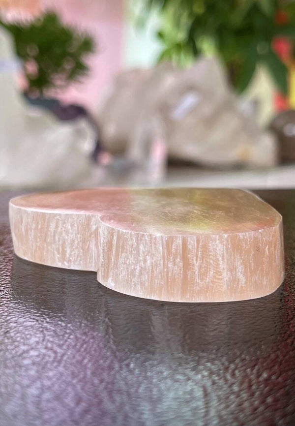 Het werkt aardend als met hogere energieën gewerkt wordt en beschermt en reinigt de aura. Seleniet stimuleert een heldere geest en geeft inzicht in je levenslessen. Het bevordert rust, balans en vrede in jezelf en je omgeving. Ook een goede steen om kristallen en edelstenen te reinigen, leg ze bij of op de steen.