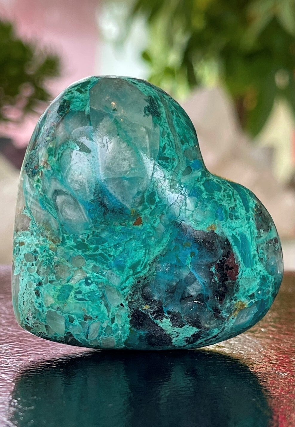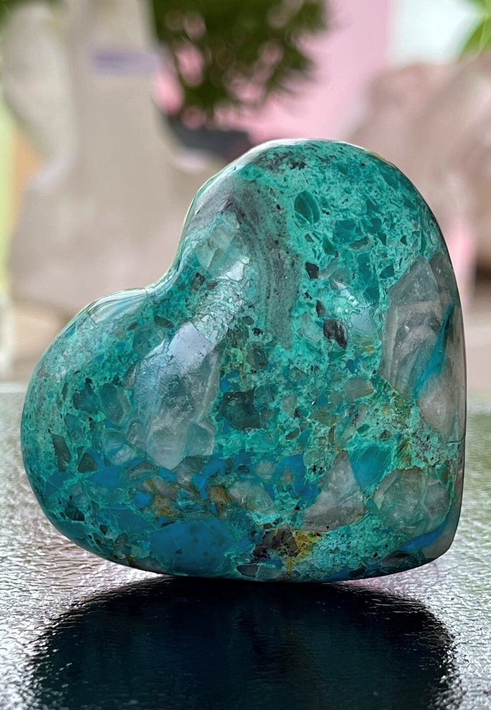 Chrysocolla zorgt voor balans en innerlijk evenwicht en werkt activerend of kalmerend al naar gelang wat nodig is in een bepaalde situatie. Als men weinig energie heeft en zich futloos voelt, werkt het activerend, geeft kracht en zet aan tot handelen. Als men nerveus of gespannen is werkt de steen kalmerend en verlicht overprikkeldheid en stress.