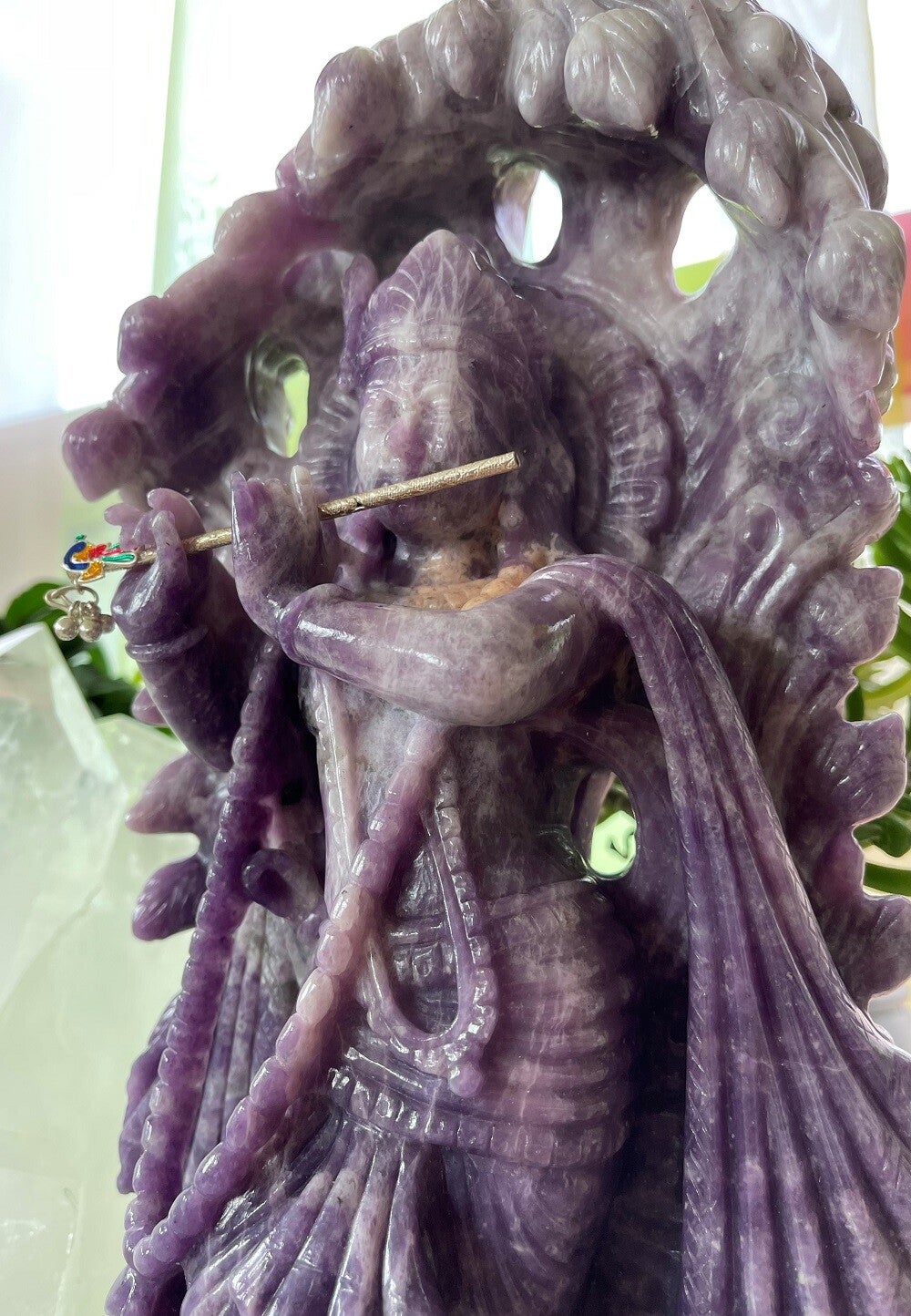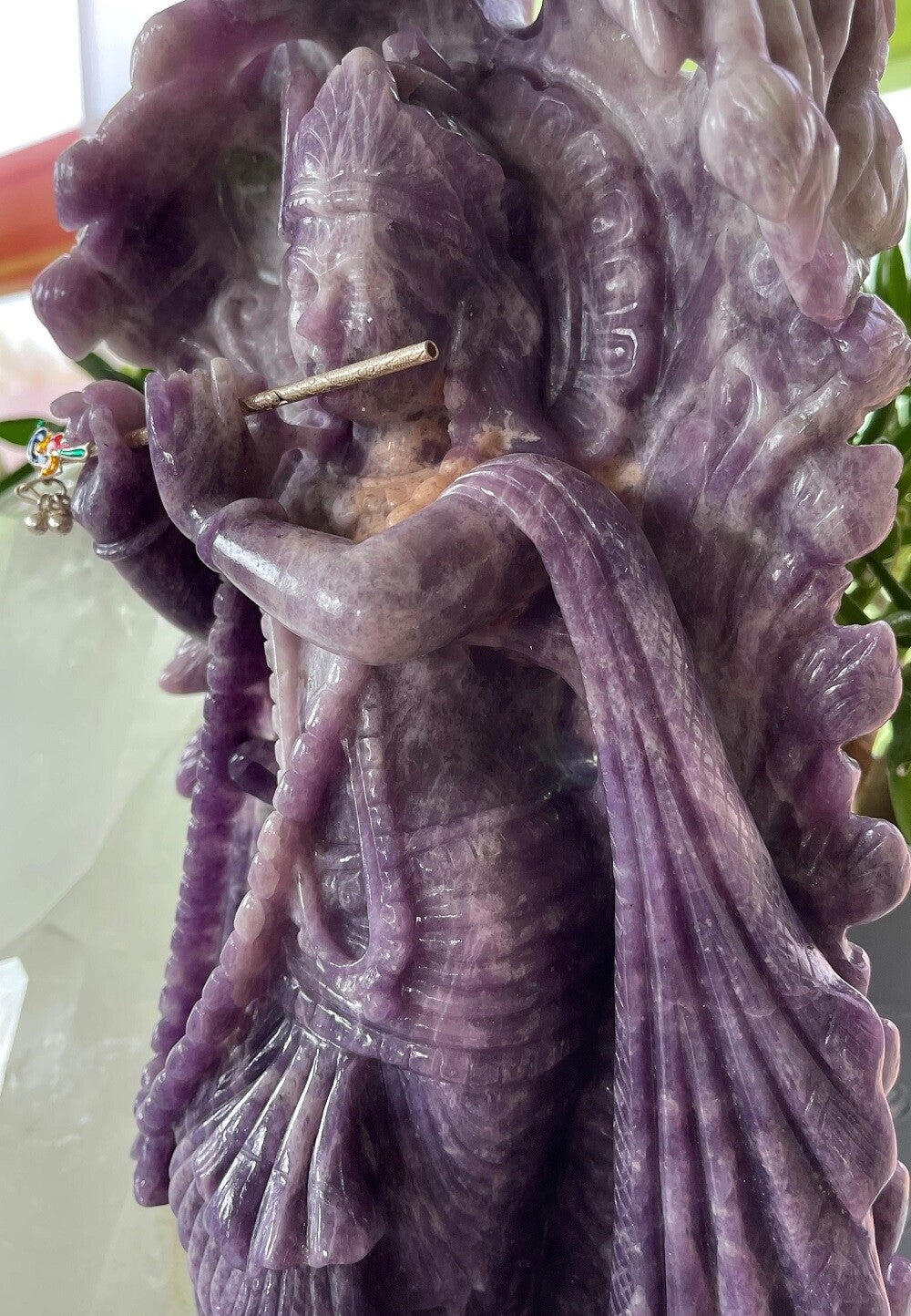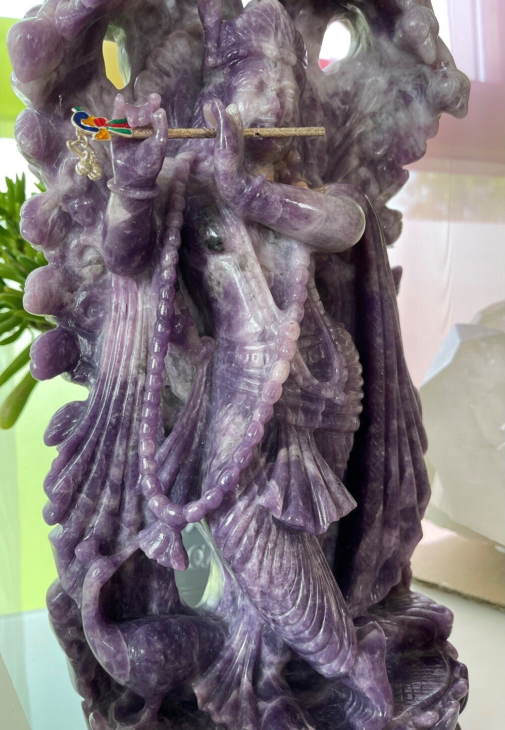 Prachtig handgemaakte Krishna van Lepidoliet, statue uit India, zeer gedetailleerd beeld, groot