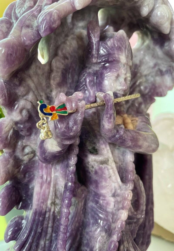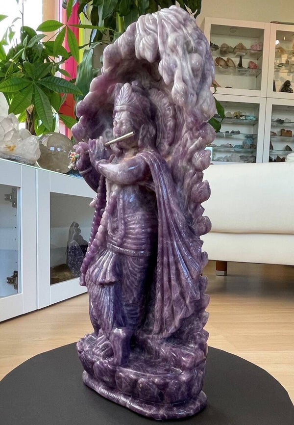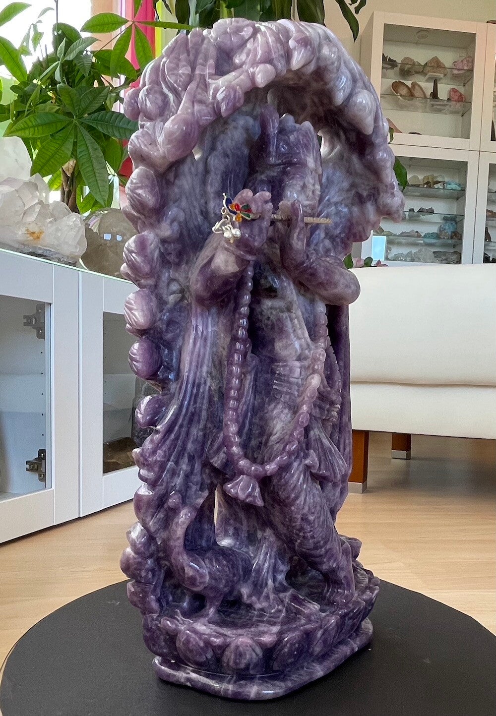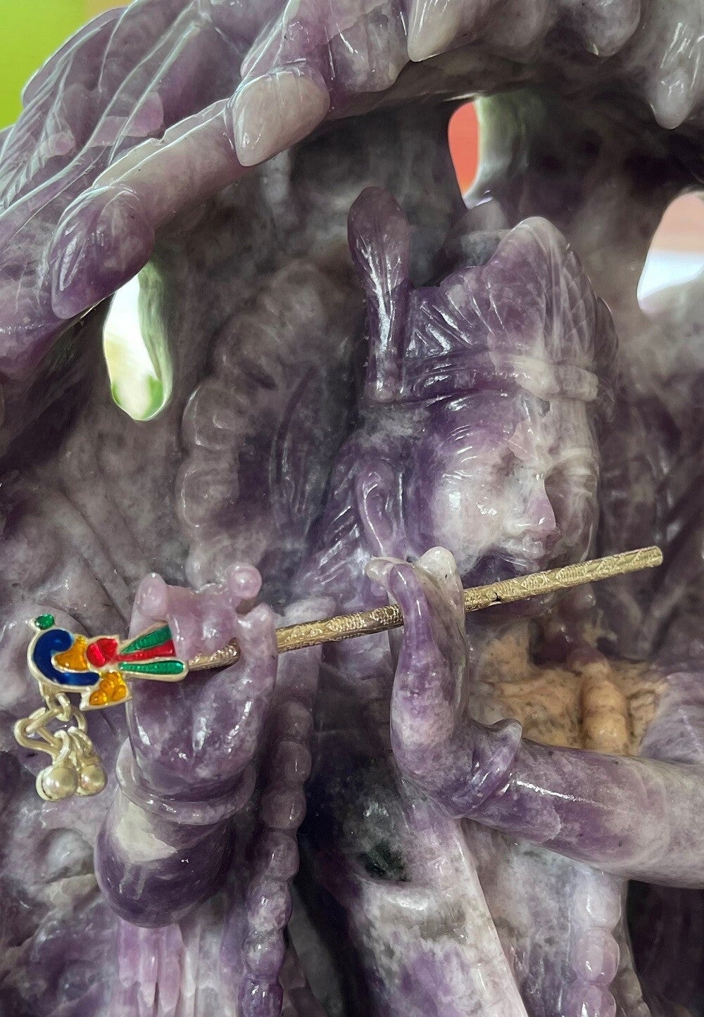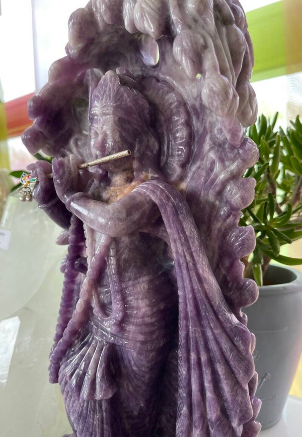 Prachtig handgemaakte Krishna van Lepidoliet, statue uit India, zeer gedetailleerd beeld, groot