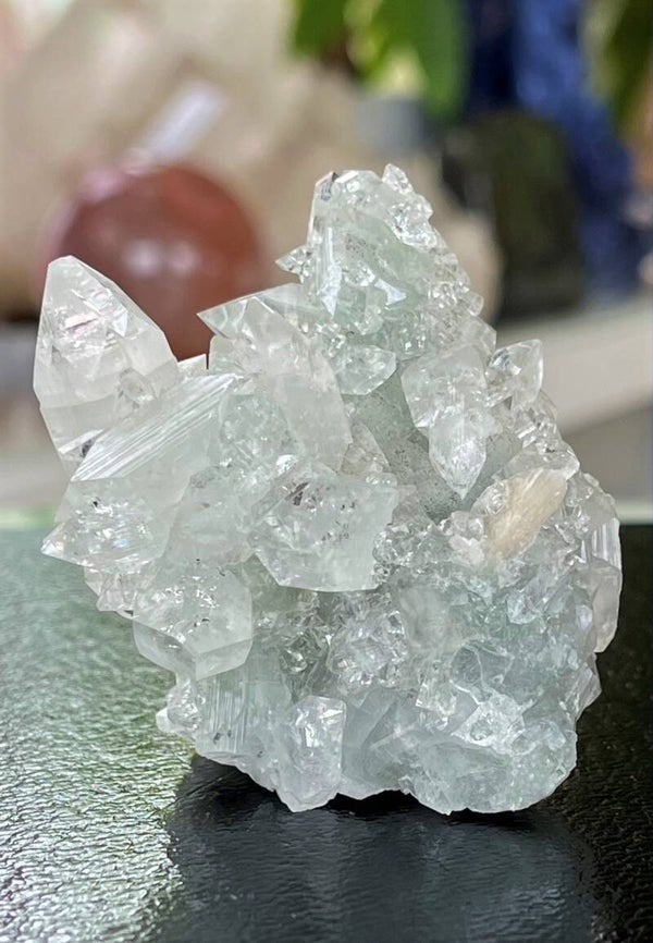 Apofylliet is ook een hele spirituele steen. Het helpt bij de geleiding van energieën en kan daarom heel goed gebruikt worden bij healings en energetisch werk zoals bijvoorbeeld reiki en quantum touch. Mediteren met deze steen geeft spirituele inzichten en kennis. Het werkt aardend bij astraal reizen.