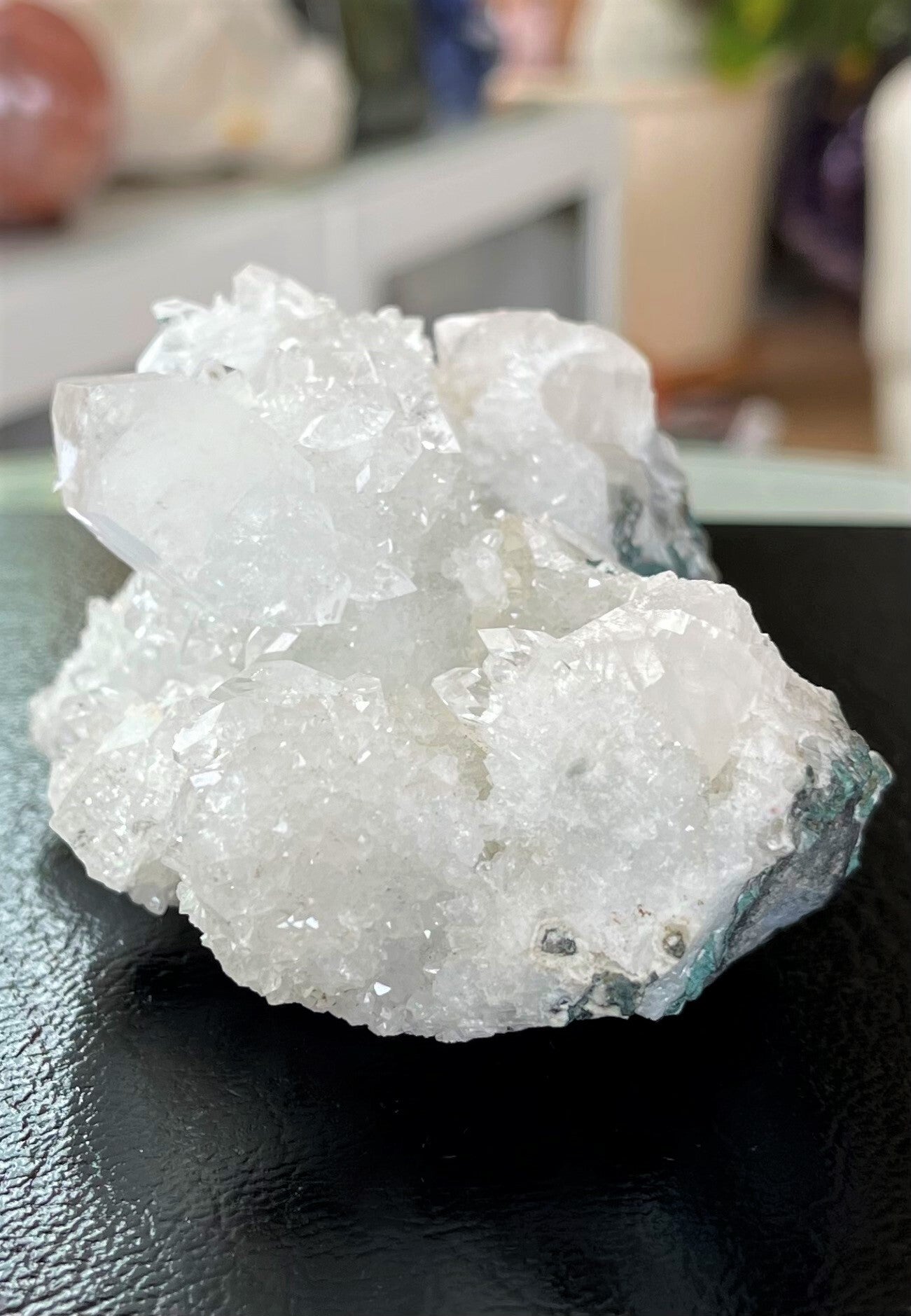 Apofylliet is ook een hele spirituele steen. Het helpt bij de geleiding van energieën en kan daarom heel goed gebruikt worden bij healings en energetisch werk zoals bijvoorbeeld reiki en quantum touch. Mediteren met deze steen geeft spirituele inzichten en kennis. Het werkt aardend bij astraal reizen.