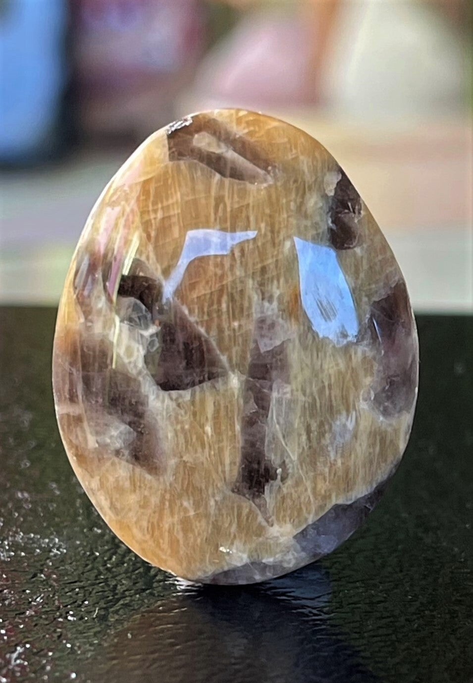 Zebra Veldspaat met (Rook)kwarts platte knuffelsteen of zaksteen, klein