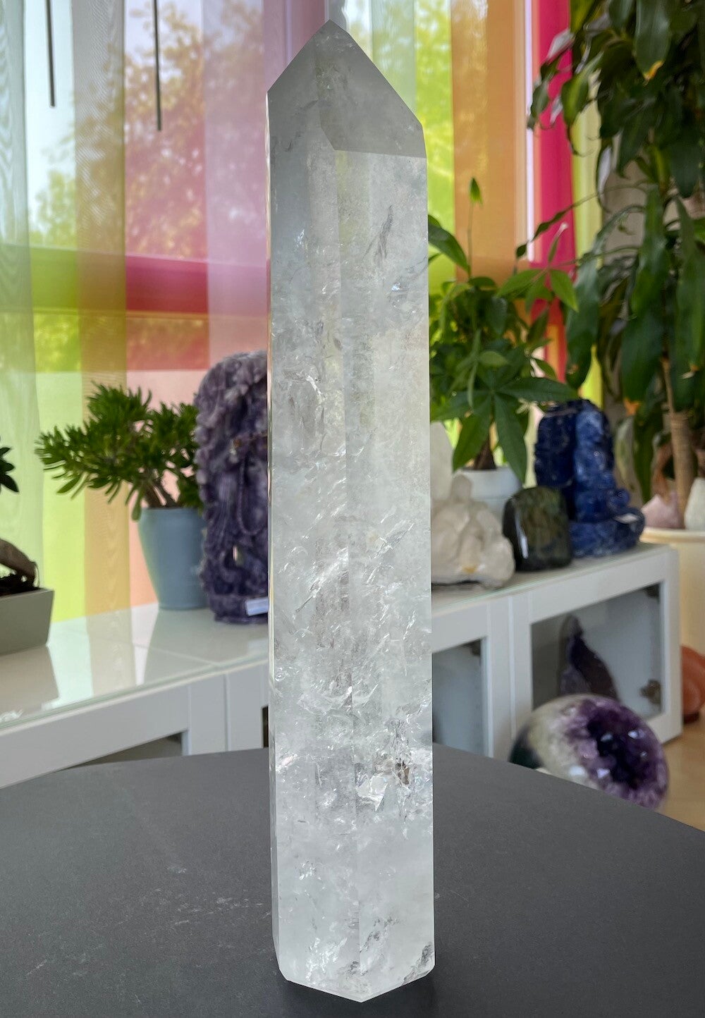 Bergkristal gepolijste heldere punt uit Brazilië met vlakke onderkant, 6 vlakken, lang en groot