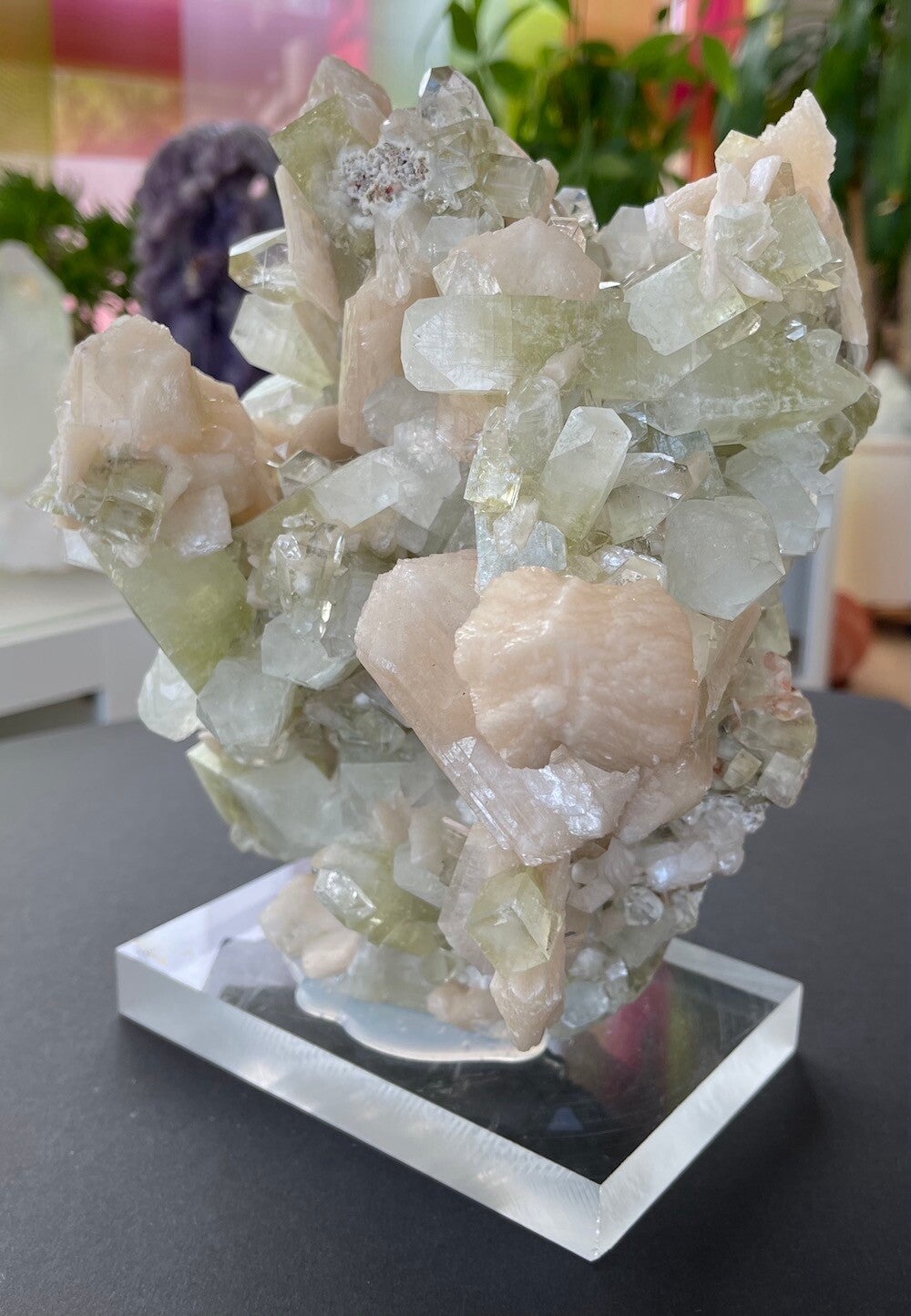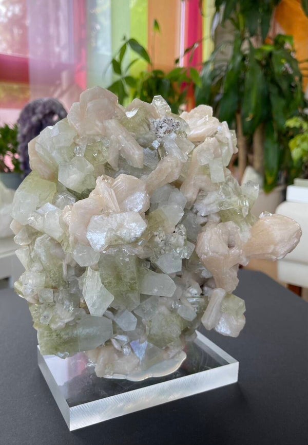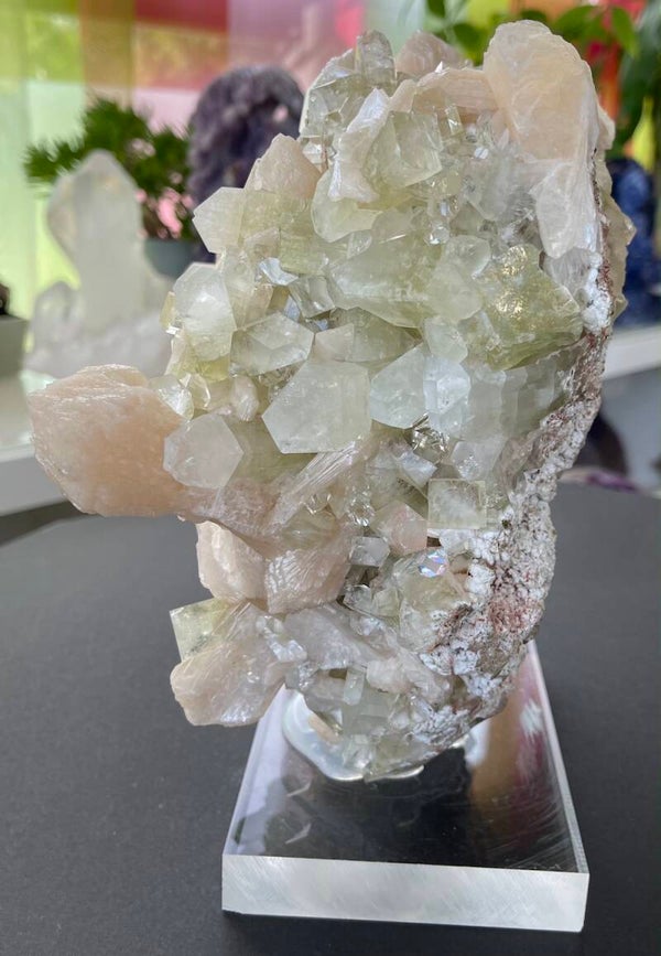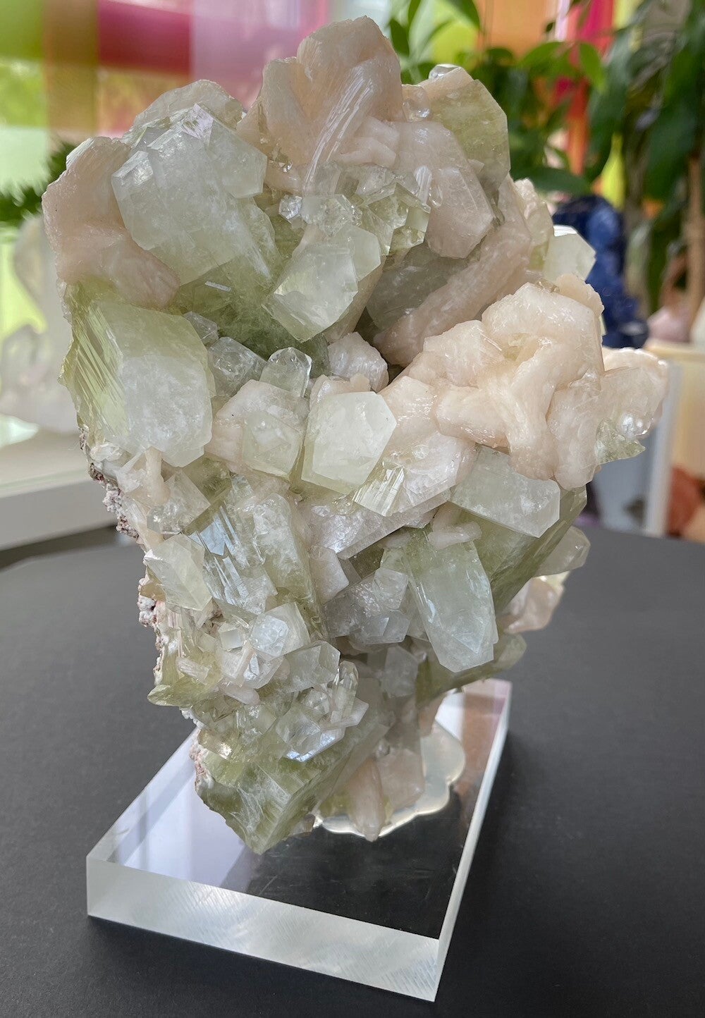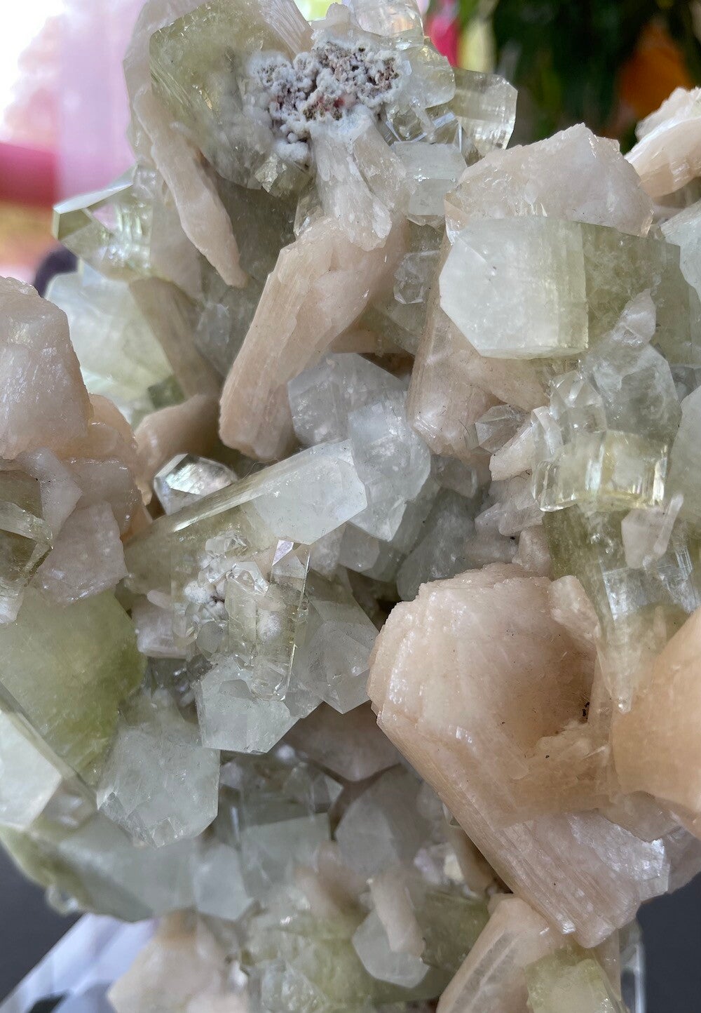 Mooi stuk Apophylliet met Stilbiet ruw uit India met prachtige heldere puntjes, groot