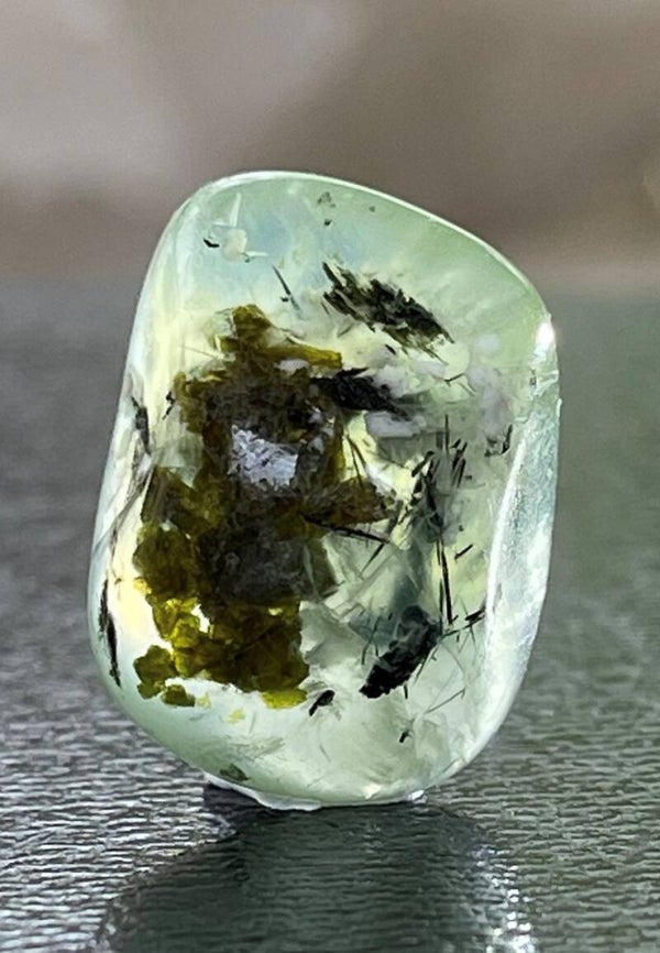 De steen verbetert ook de zintuigen en het analytisch denkvermogen. Prehniet heeft een sterke connectie met de natuur. Spiritueel beschermt het de aura, helpt visualiseren en contact maken met gidsen en engelen en is dus een goede steen om te gebruiken bij het mediteren.