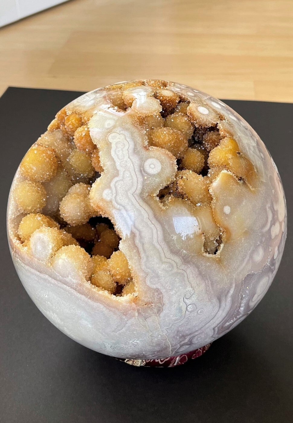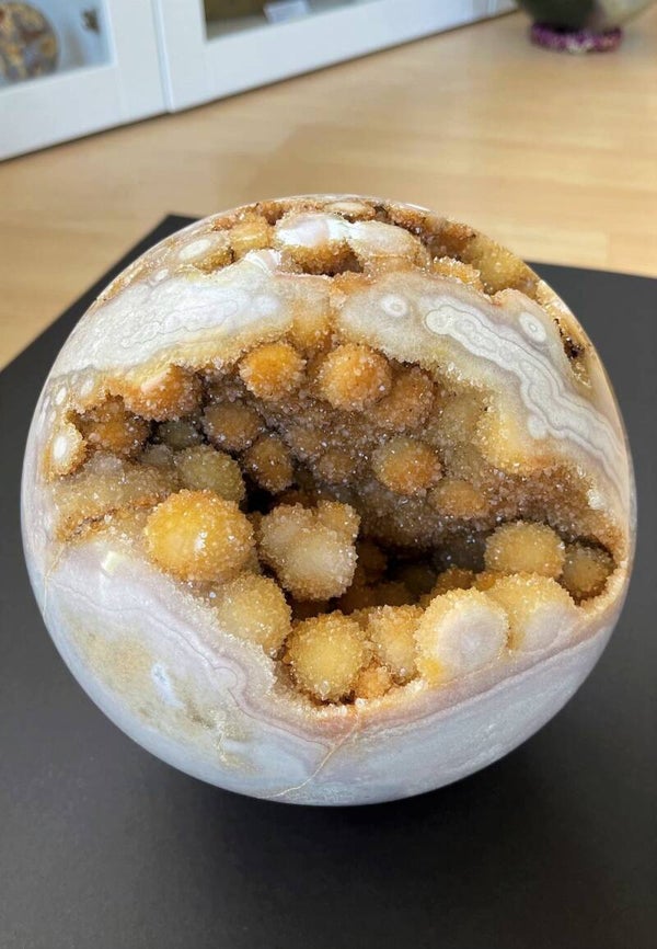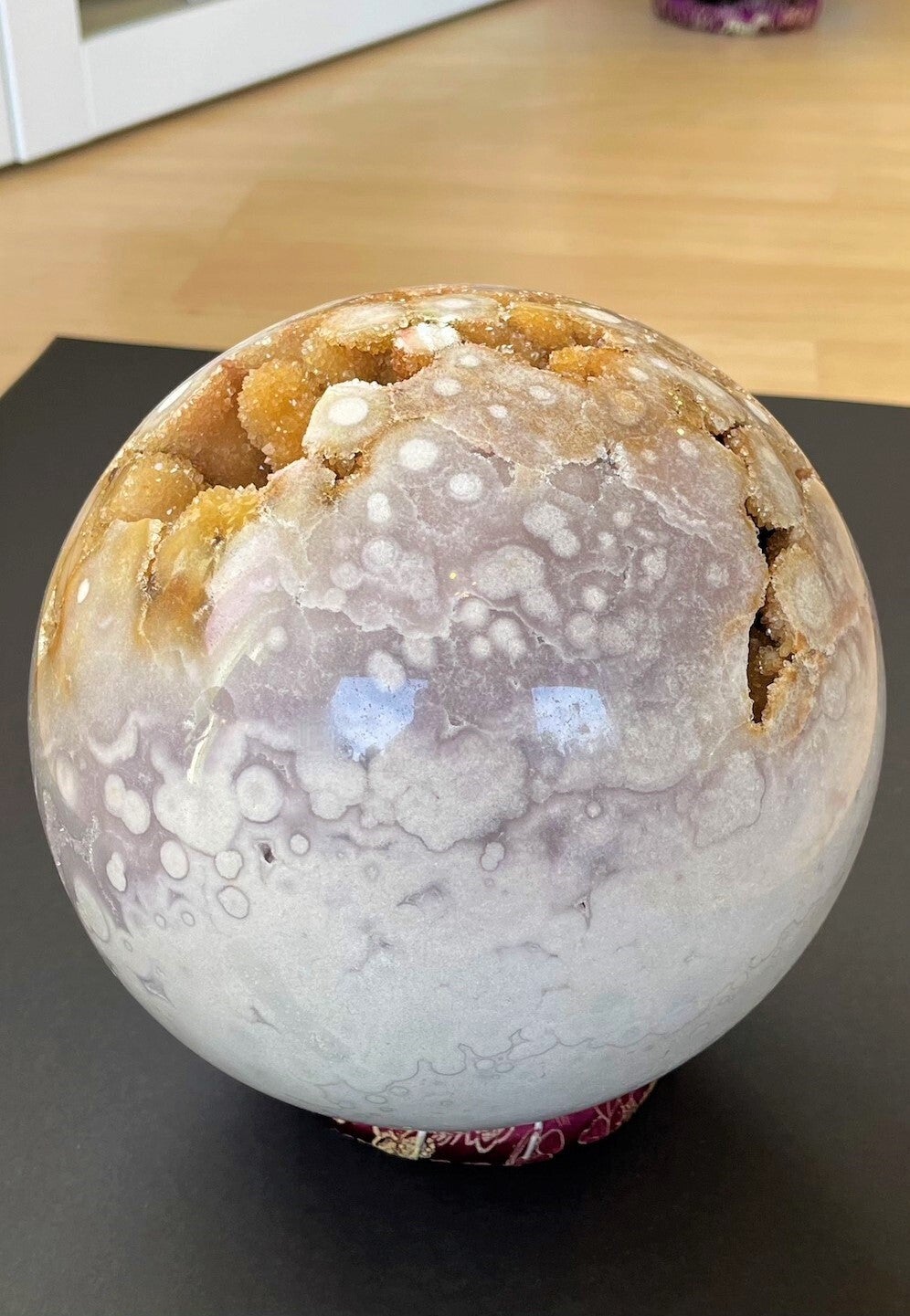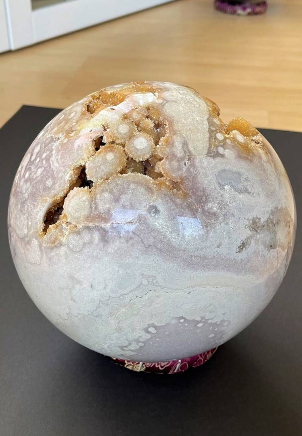 Heel bijzondere open roze Amethist bol uit Brazillië, met ronde gekristalliseerde bolletjes, groot