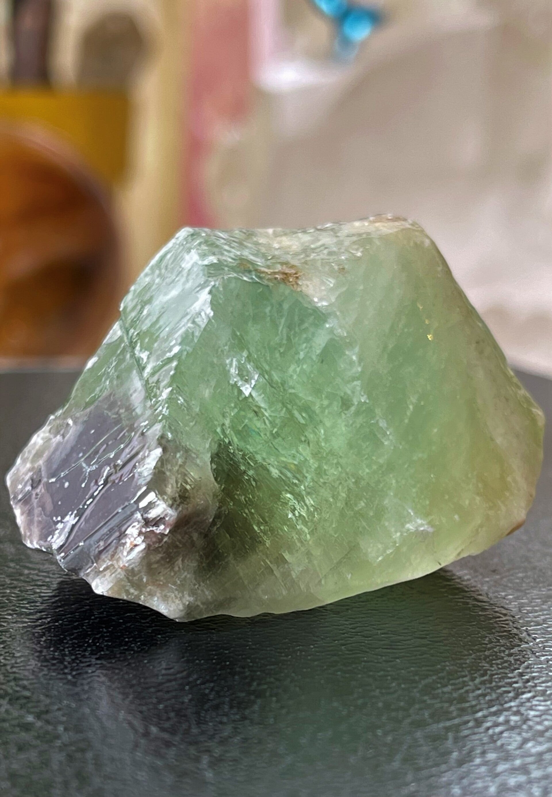 Groene Calciet maakt, naast de algemene eigenschappen van Calciet flexibel en helpt bij het loslaten van oude denk- en gedragspatronen. Het herstelt de emotionele balans en maakt positief en optimistisch.