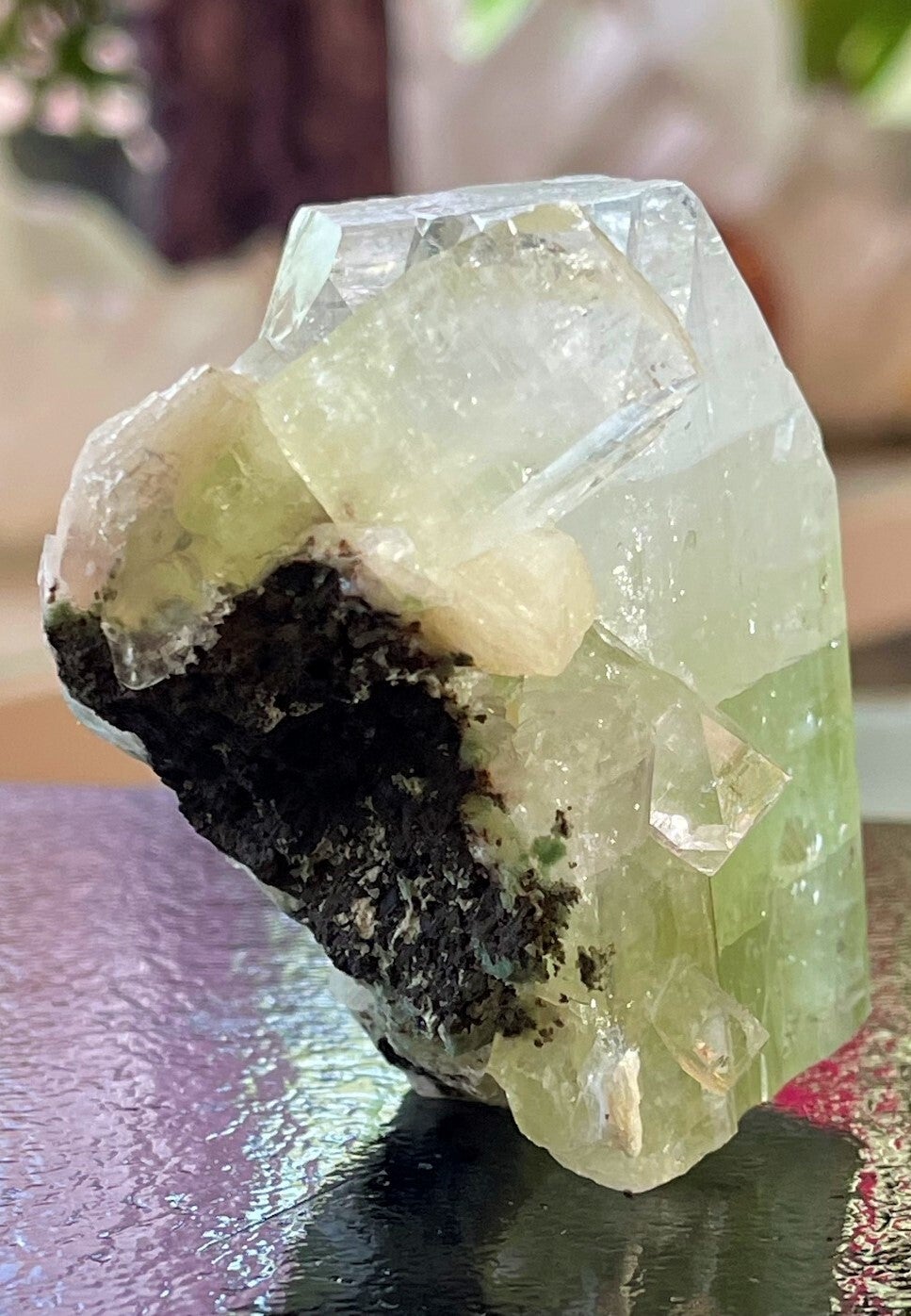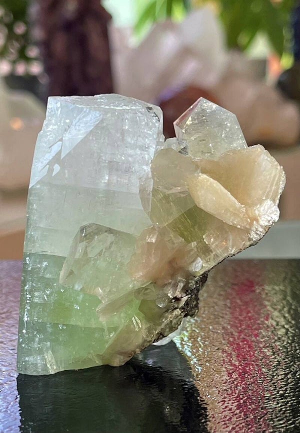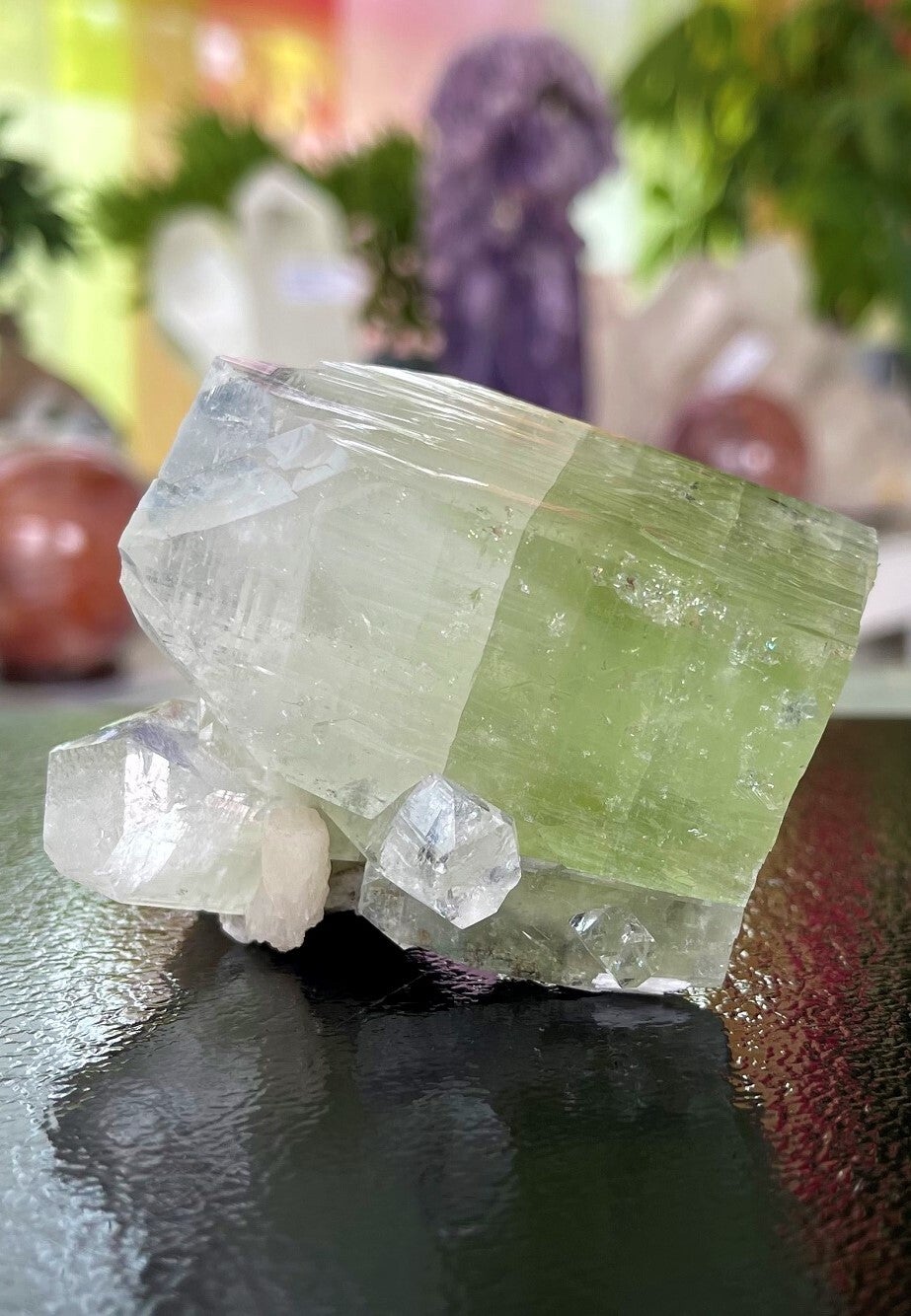 Speciaal ruw stukje groene Apophylliet met Stilbiet uit India, medium