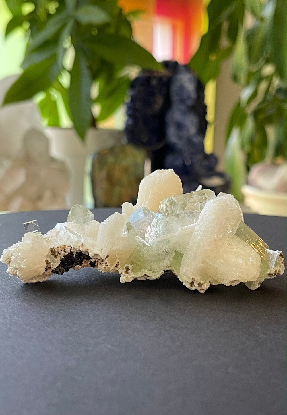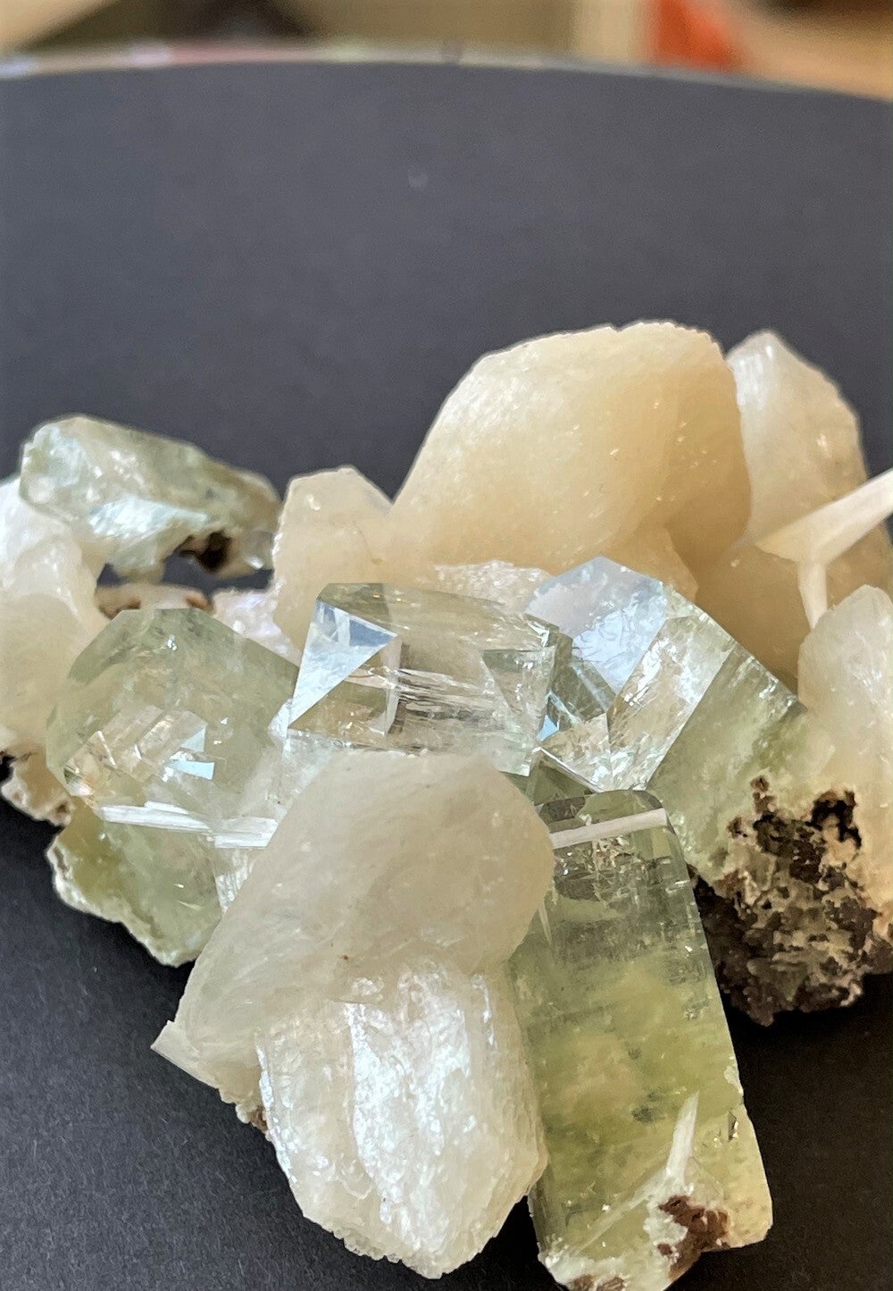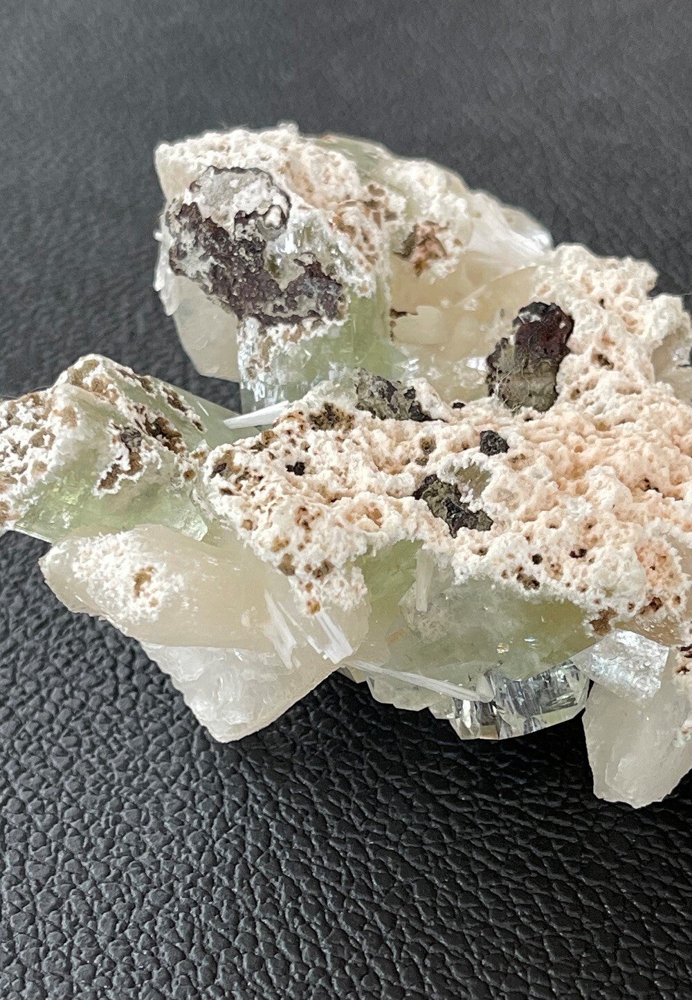 Prachtig stuk groene Apophylliet met Stilbiet en Scoleciet ruw uit India, met zeer heldere groene Apofylliet, medium