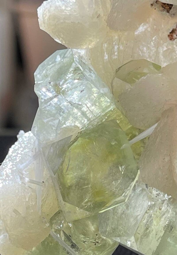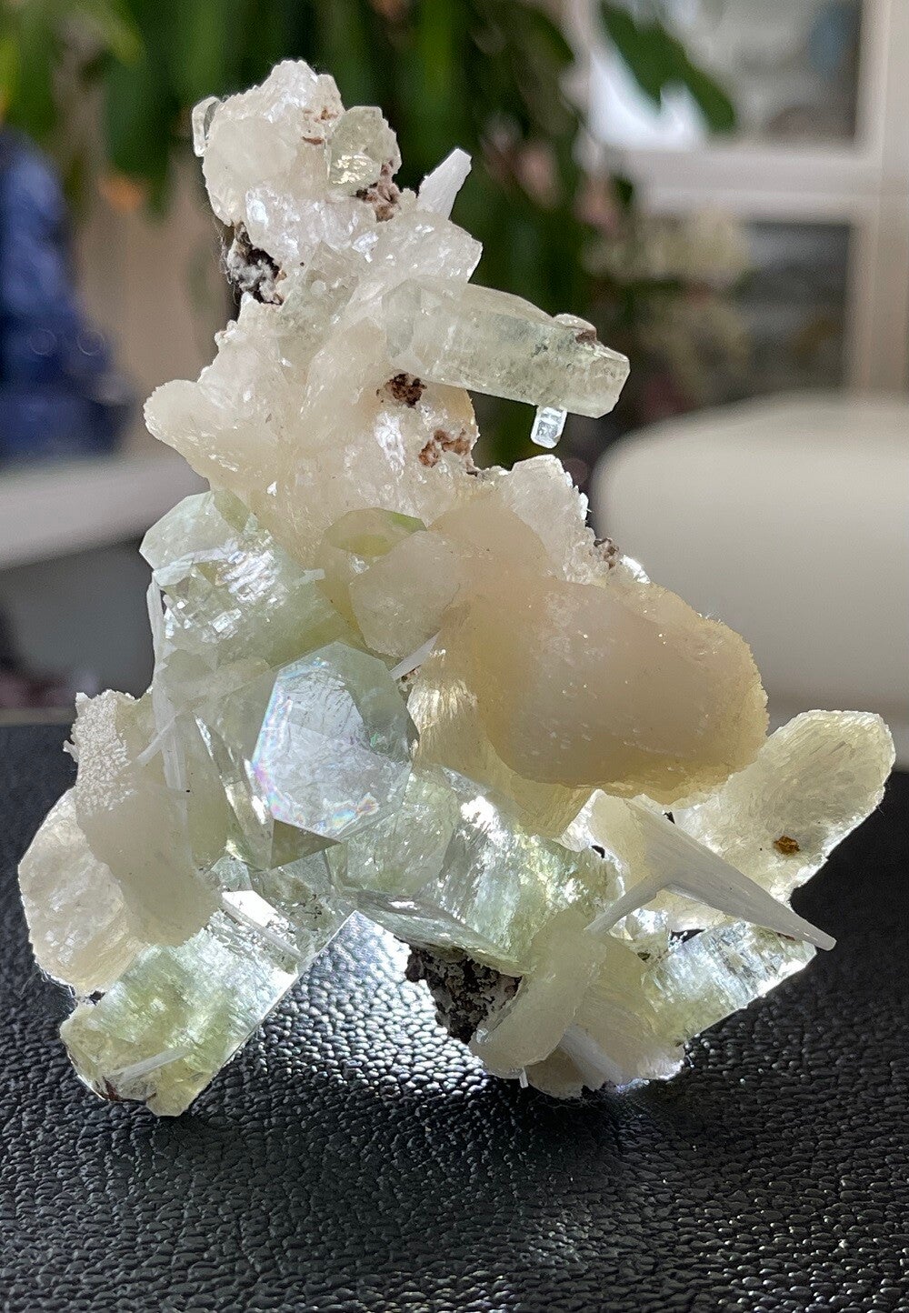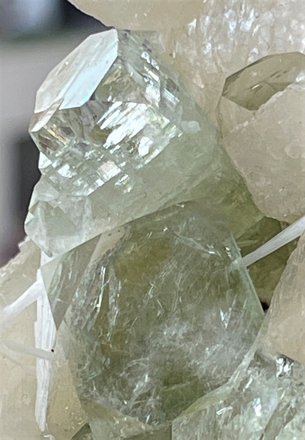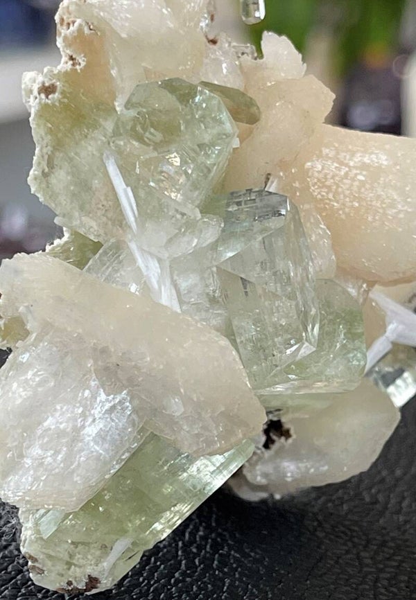 Prachtig stuk groene Apophylliet met Stilbiet en Scoleciet ruw uit India, met zeer heldere groene Apofylliet, medium