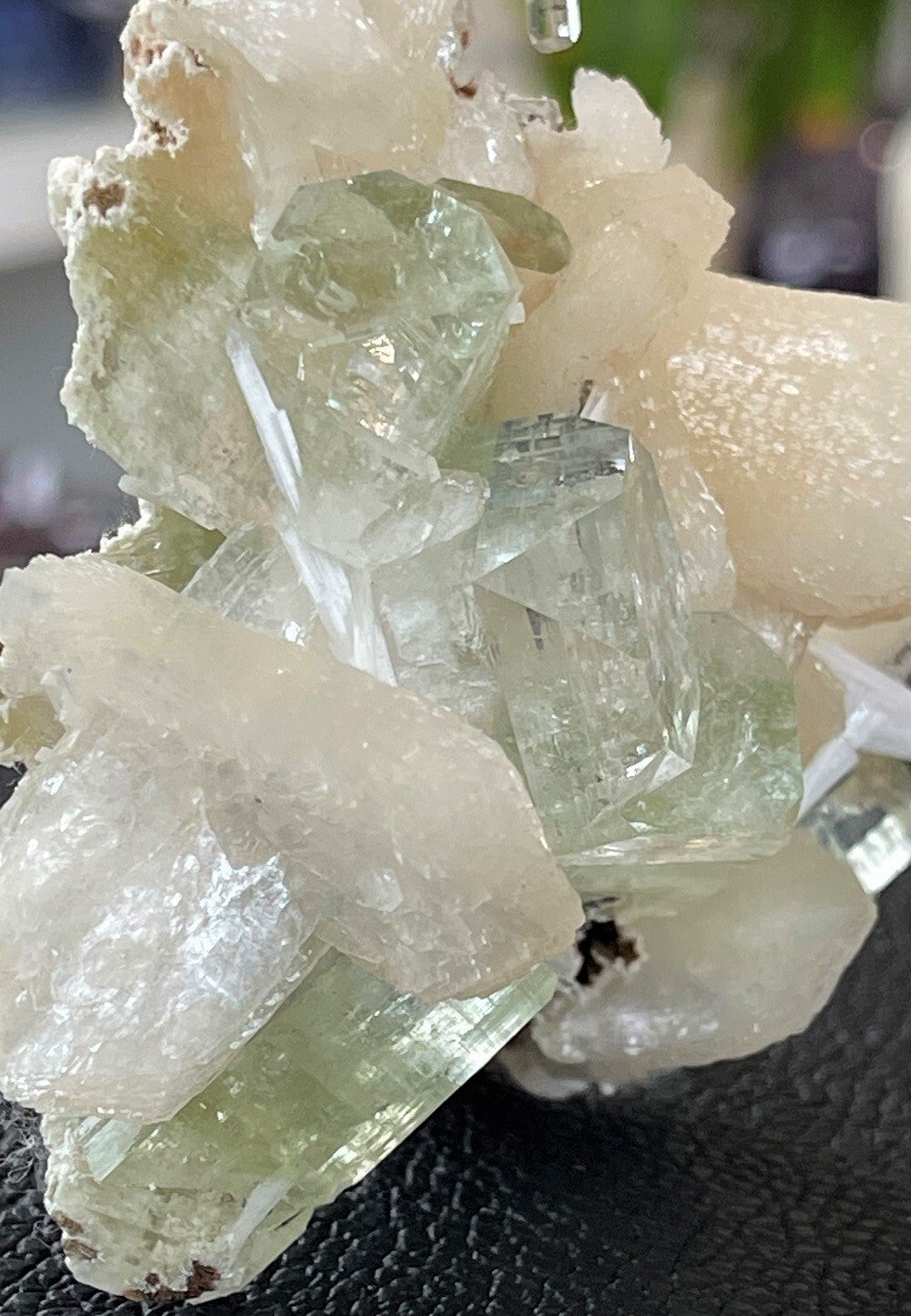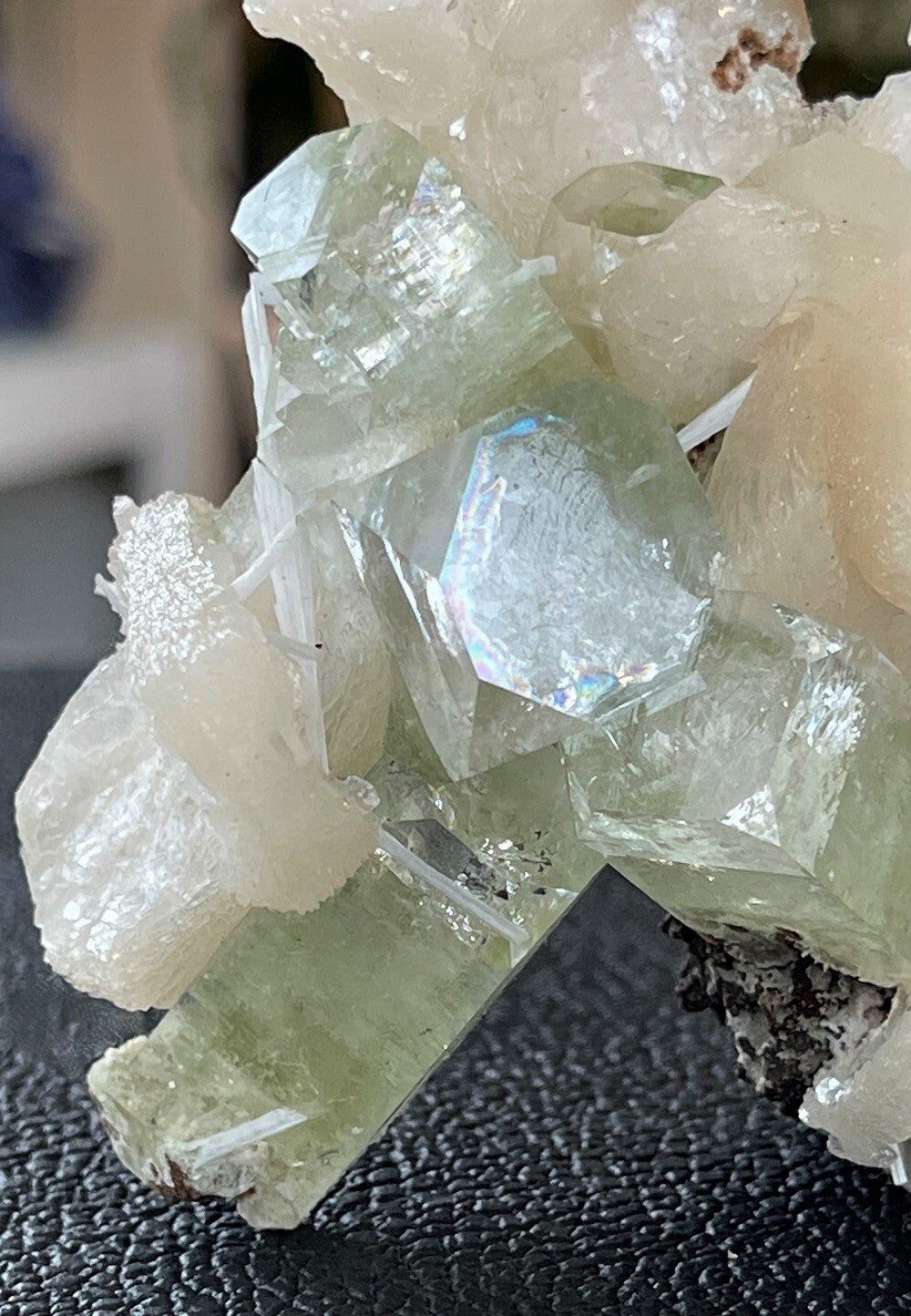 Apofylliet is ook een hele spirituele steen. Het helpt bij de geleiding van energieën en kan daarom heel goed gebruikt worden bij healings en energetisch werk zoals bijvoorbeeld reiki en quantum touch. Mediteren met deze steen geeft spirituele inzichten en kennis. Het werkt aardend bij astraal reizen.