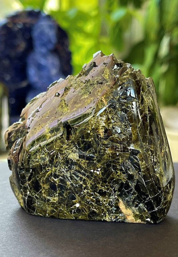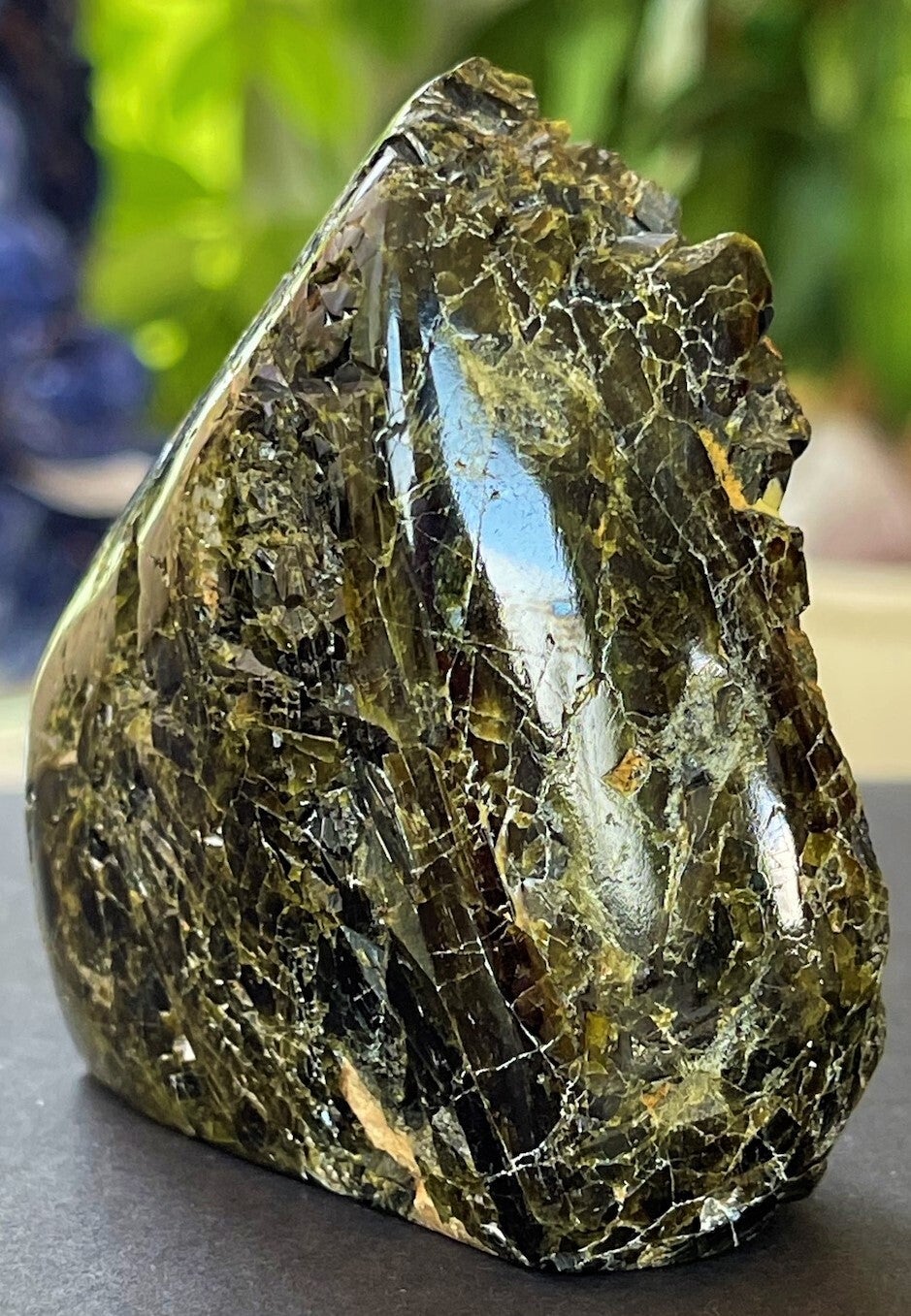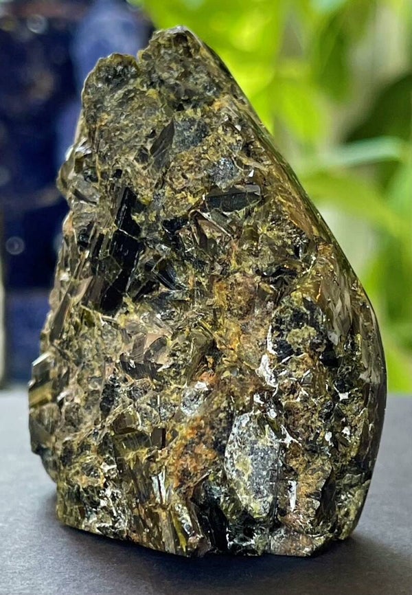 Prachtig stukje Epidoot free form sculptuur, half ruw met mooie schitteringen, medium