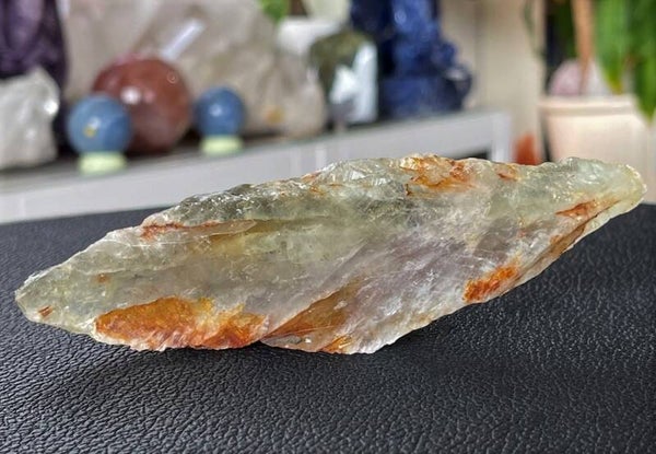 Prasioliet plat stukje uit Brazilië, aan 2 zijden gepolijst en ruw, medium