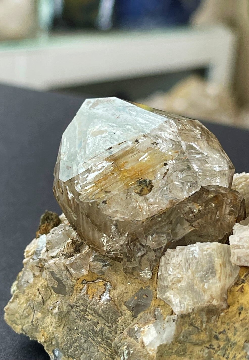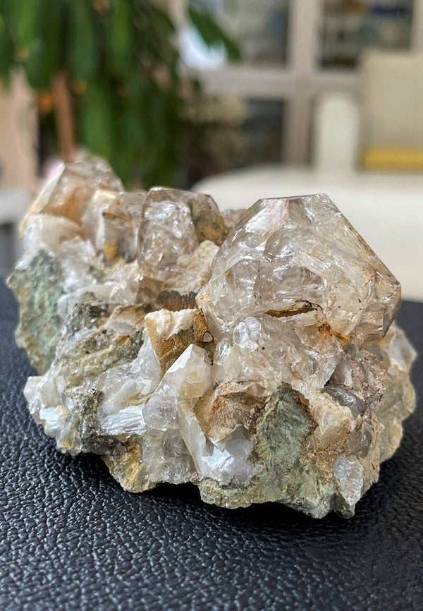 Ruw stuk heldere Kwarts dubbeleinder punten op matrix uit Marokko, lijkt erg op Vensterkwarts