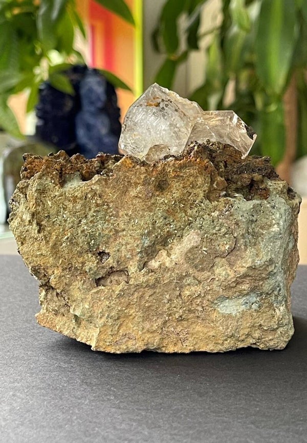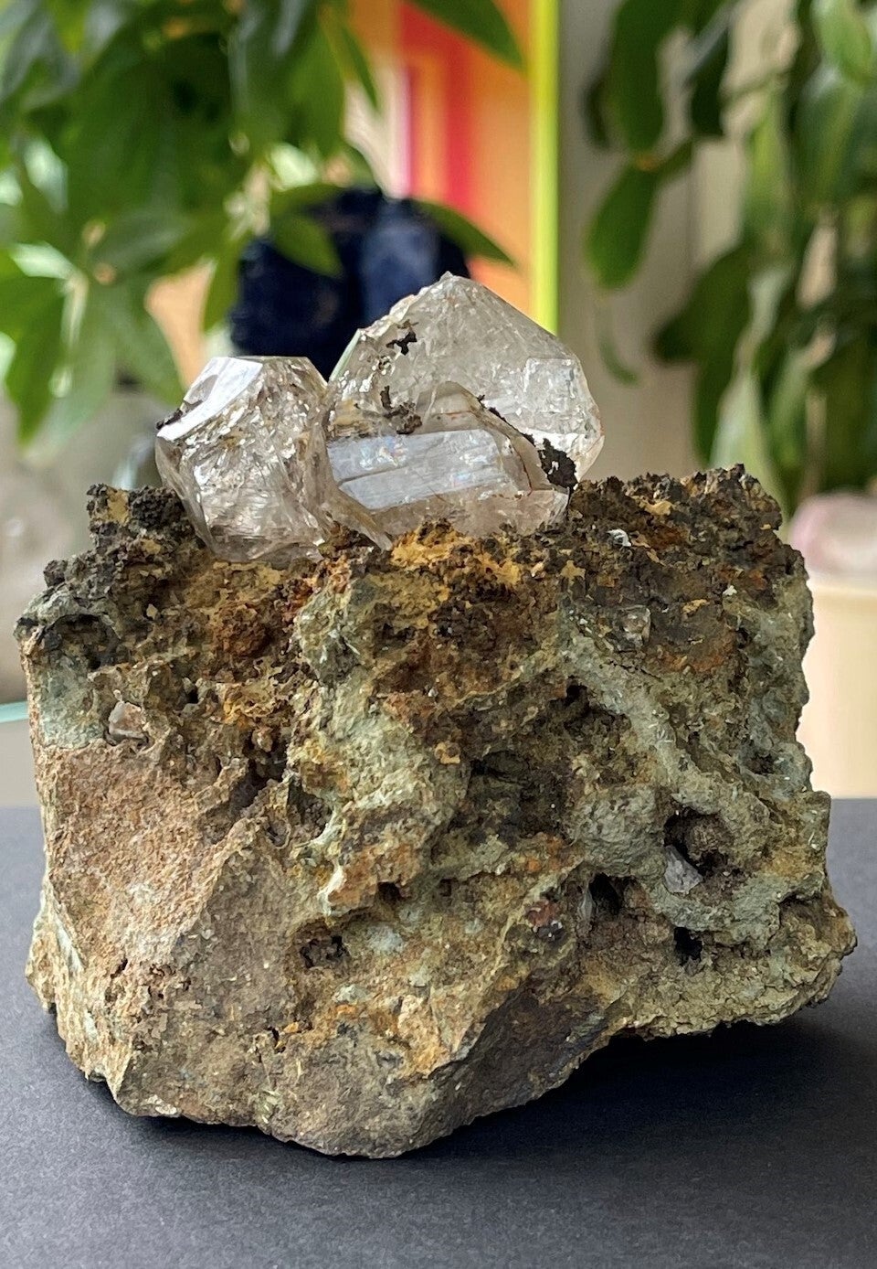 Elestiaal Vensterkwarts dubbeleinder punten op matrix uit Marokko, groot