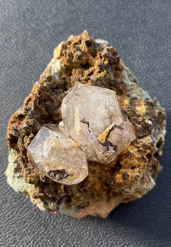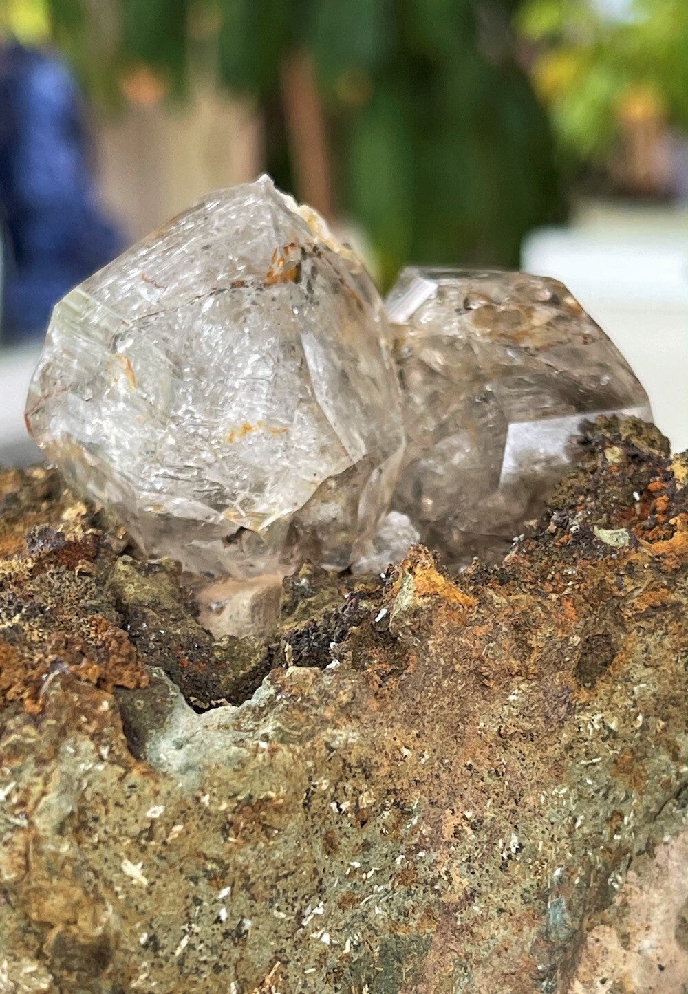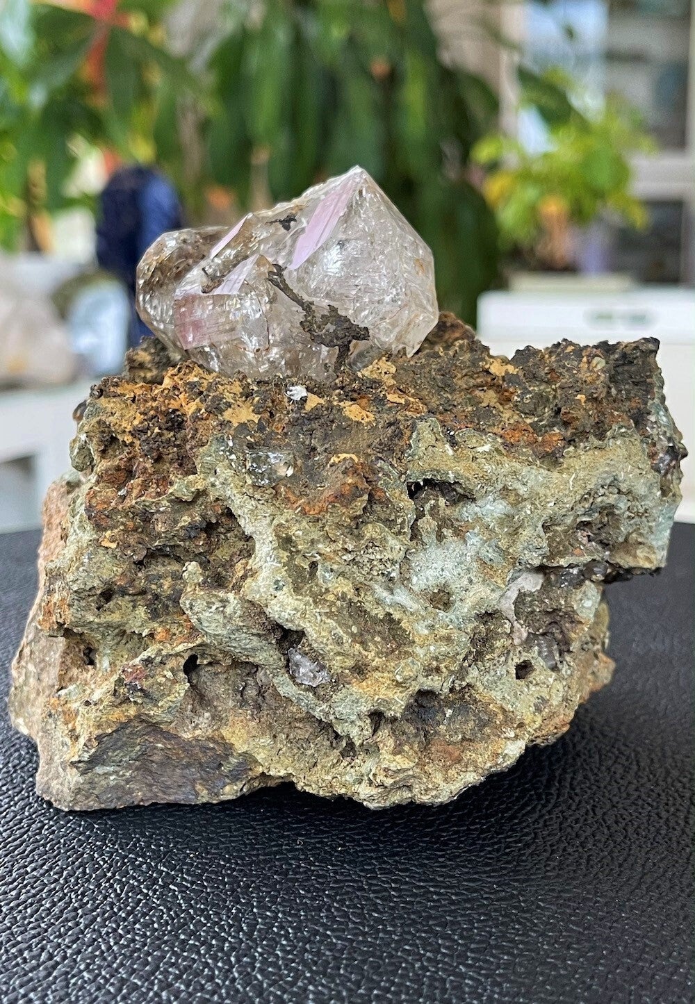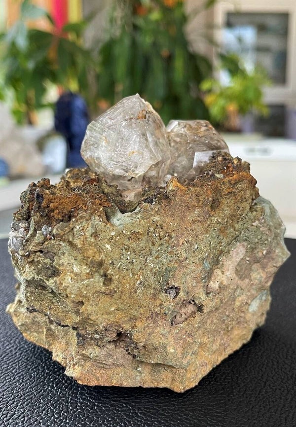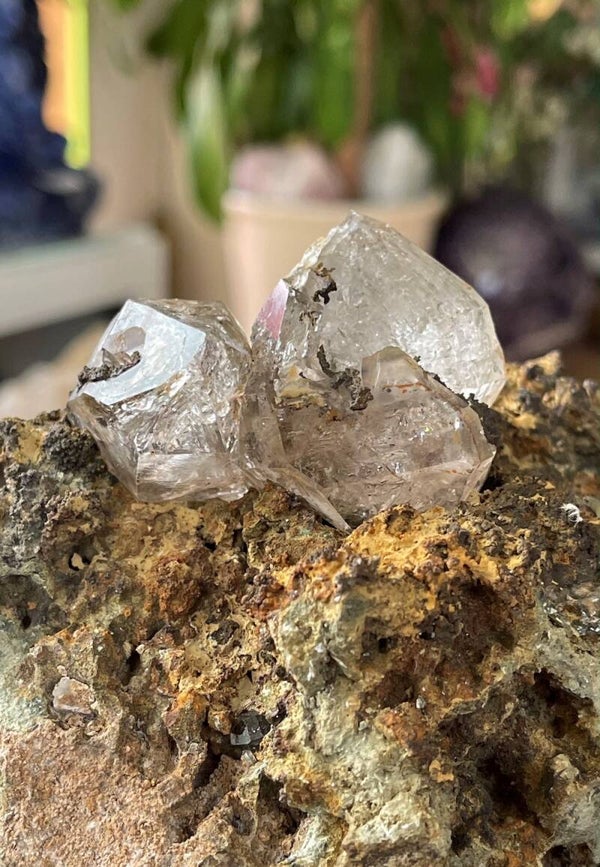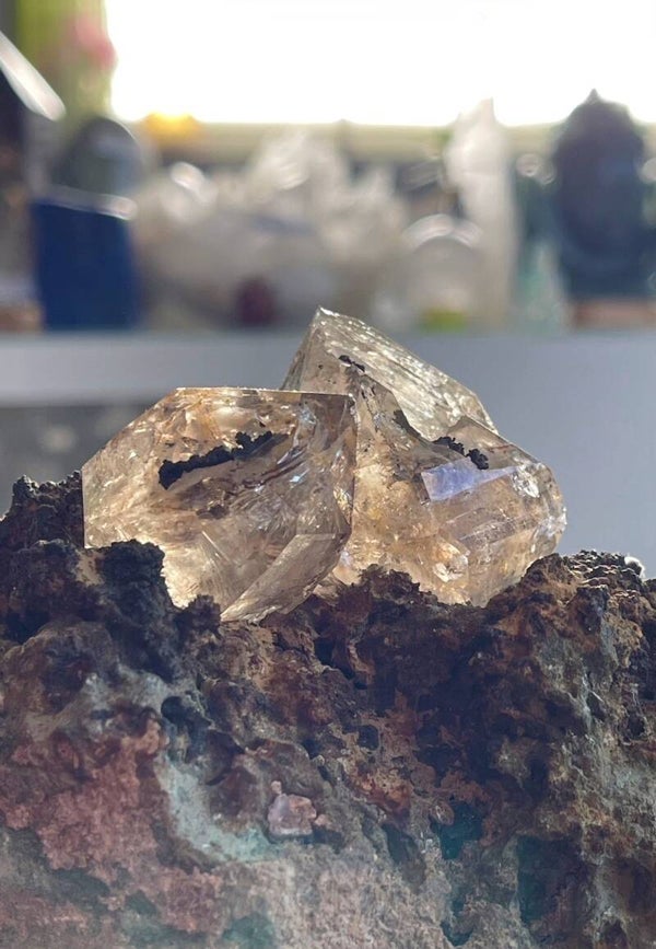 Elestial Vensterkwarts dubbeleinder punten op matrix uit Marokko ruw, groot