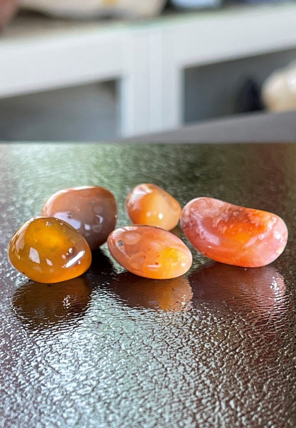Carneool werkt aardend, activerend en vitaliserend. De steen werkt opbeurend en motiverend, geeft zelfvertrouwen en heeft hierdoor een positief effect op depressies, apathie en verwarring.