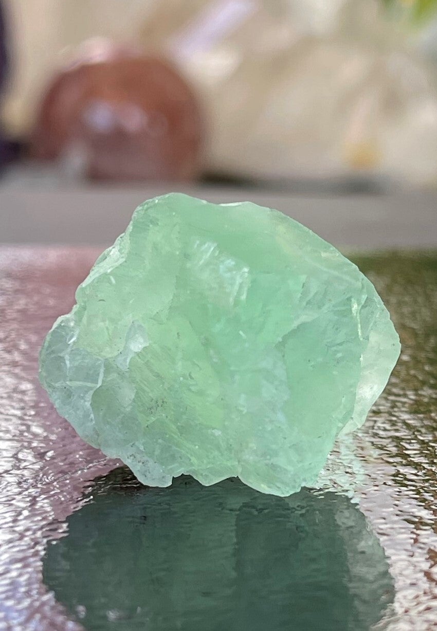 Groene Fluoriet werkt, naast de algemene eigenschappen van Fluoriet, beschermend, harmoniserend en zuiverend. Het beschermt tegen schadelijke invloeden uit de omgeving, brengt de emoties in balans, helpt trauma’s verwerken en ongezonde en compulsieve gedragspatronen en verslavingen loslaten.