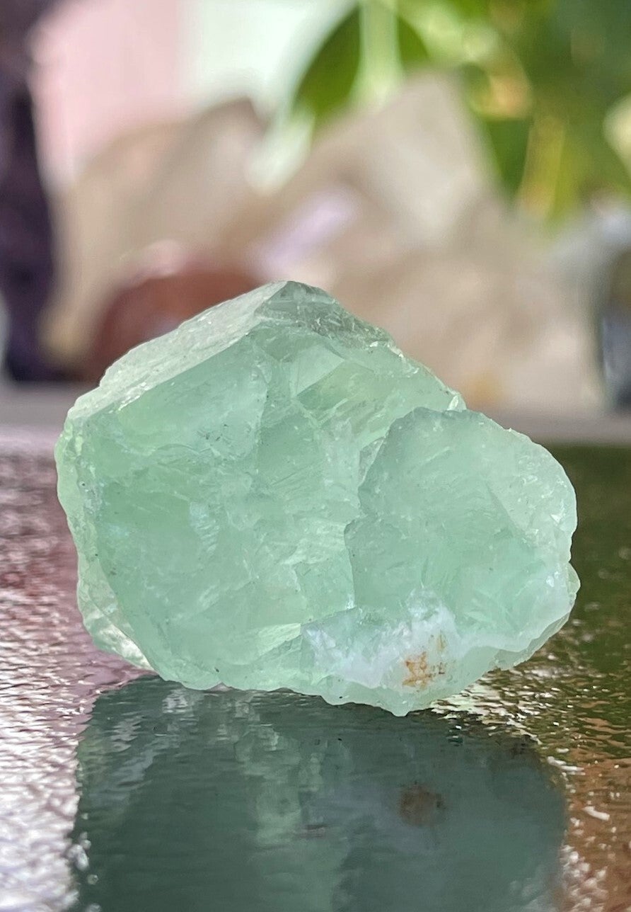 Fluoriet werkt beschermend, reinigend en stabiliserend. Beschermt tegen negatieve energie, straling van bijvoorbeeld mobiele telefoons en computers en andere negatieve invloeden van buitenaf.