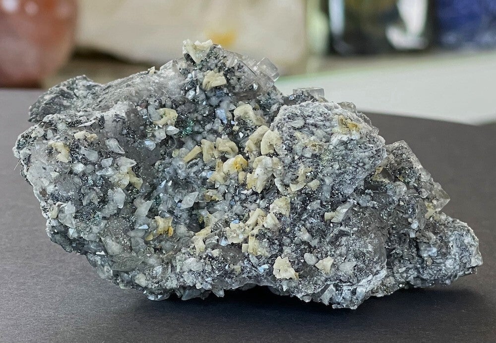 Witte Fluoriet met Dolomiet en Chalcopyriet ruw uit Spanje, medium