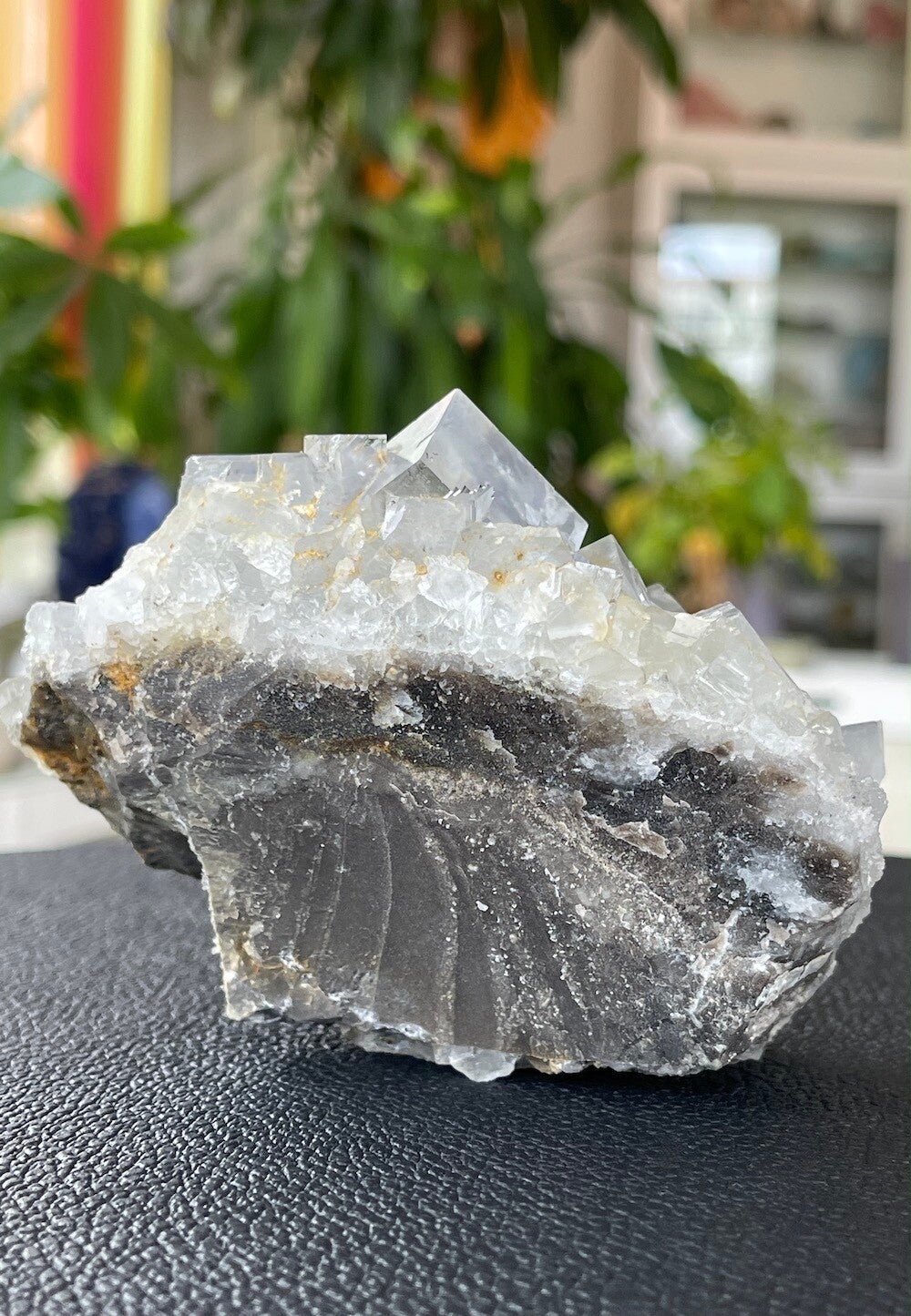 Prachtig ruw stukje witte Fluoriet uit Emilio Mijn, Asturias Spanje met heldere kubussen, medium tot groot