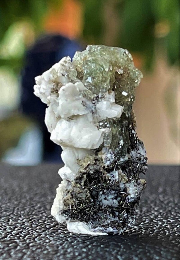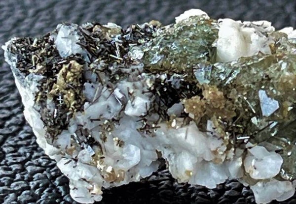 Groene Apatiet met Toermalijn, Calciet en Sideriet uit Portugal ruw, klein