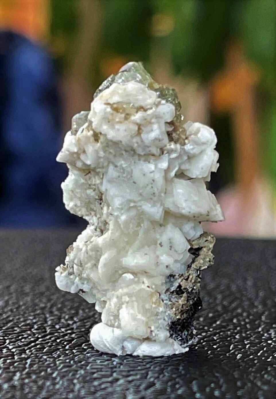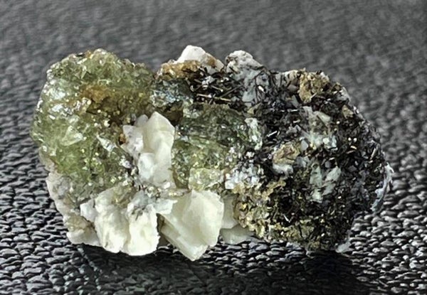 Ruw stukje groene Apatiet met Toermaijn, Calciet en Sideriet uit Panasqueira Mines, Covilhã, Castelo Branco, Portugal, klein