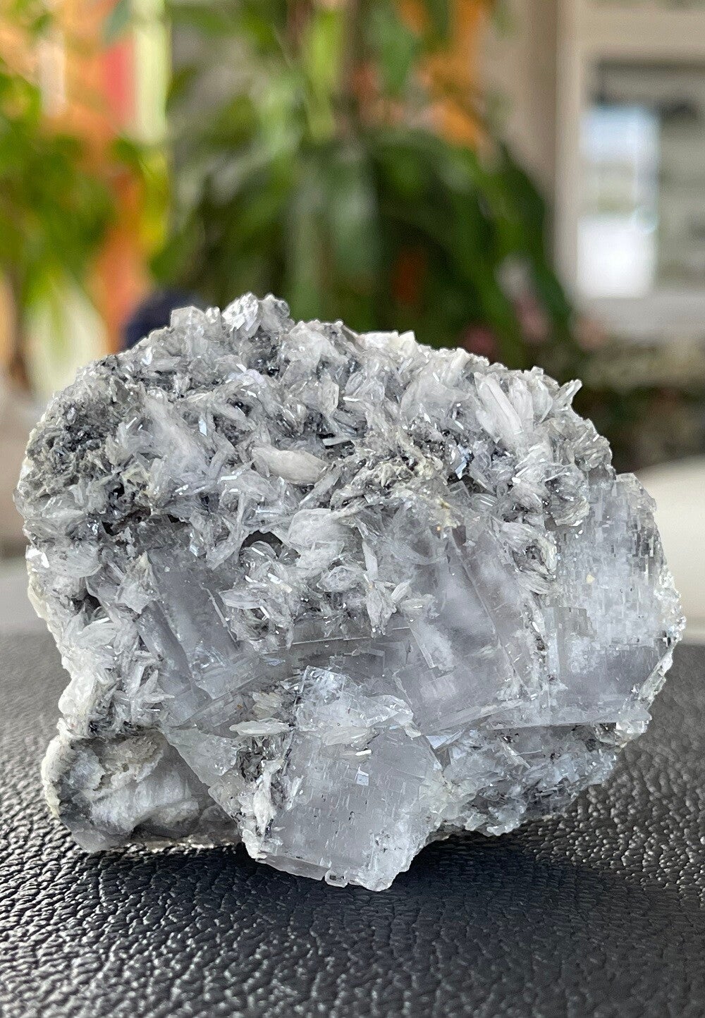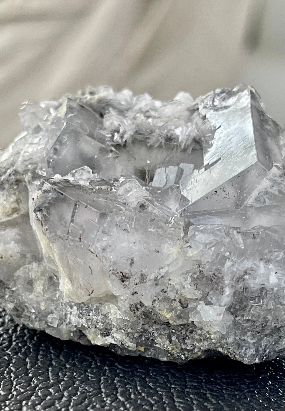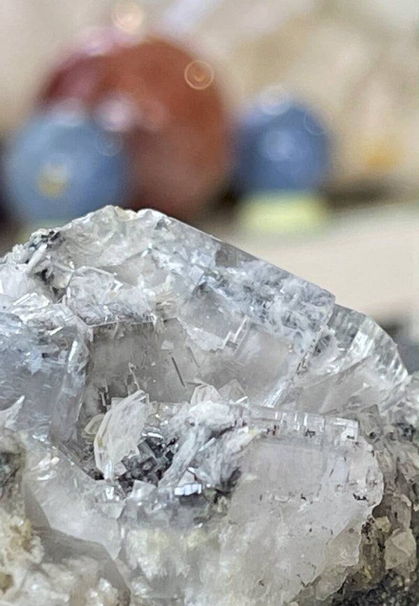 Ruw stukje witte Fluoriet met Bariet uit Emilio mijn, Asturias Spanje, heldere kubus, medium