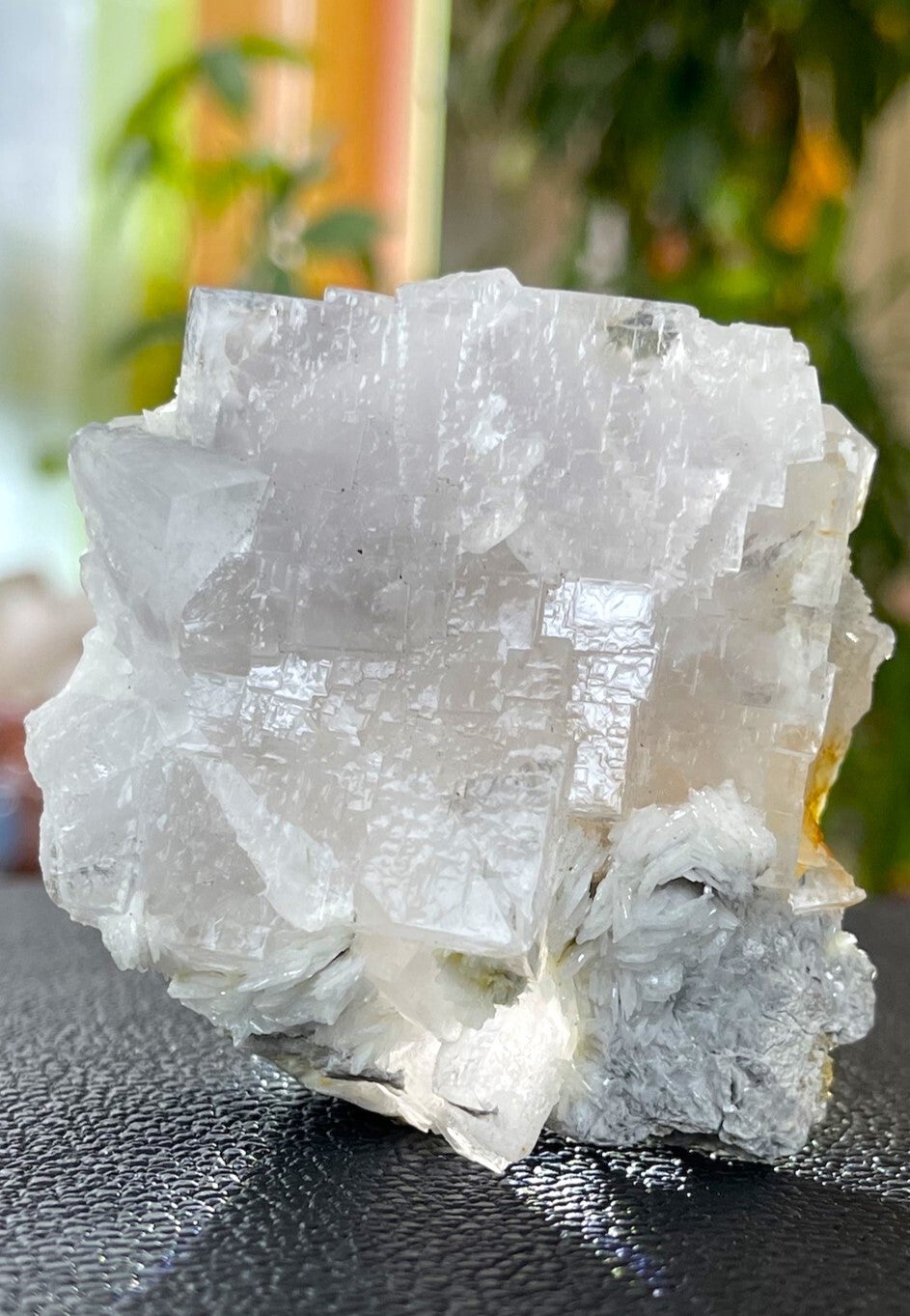 Ruw stukje witte Fluoriet met Bariet uit Emilio mijn, Asturias Spanje, medium heldere kubus