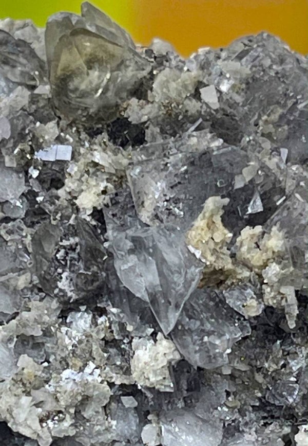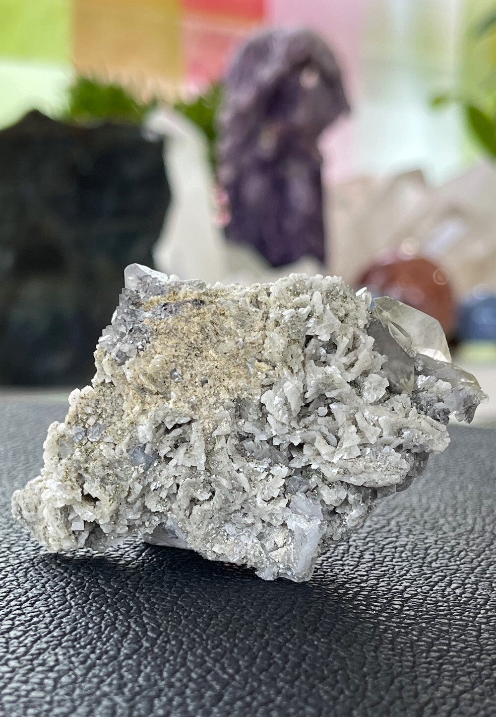Witte Fluoriet met Calciet, Muscoviet en Pyriet uit Spanje ruw, medium