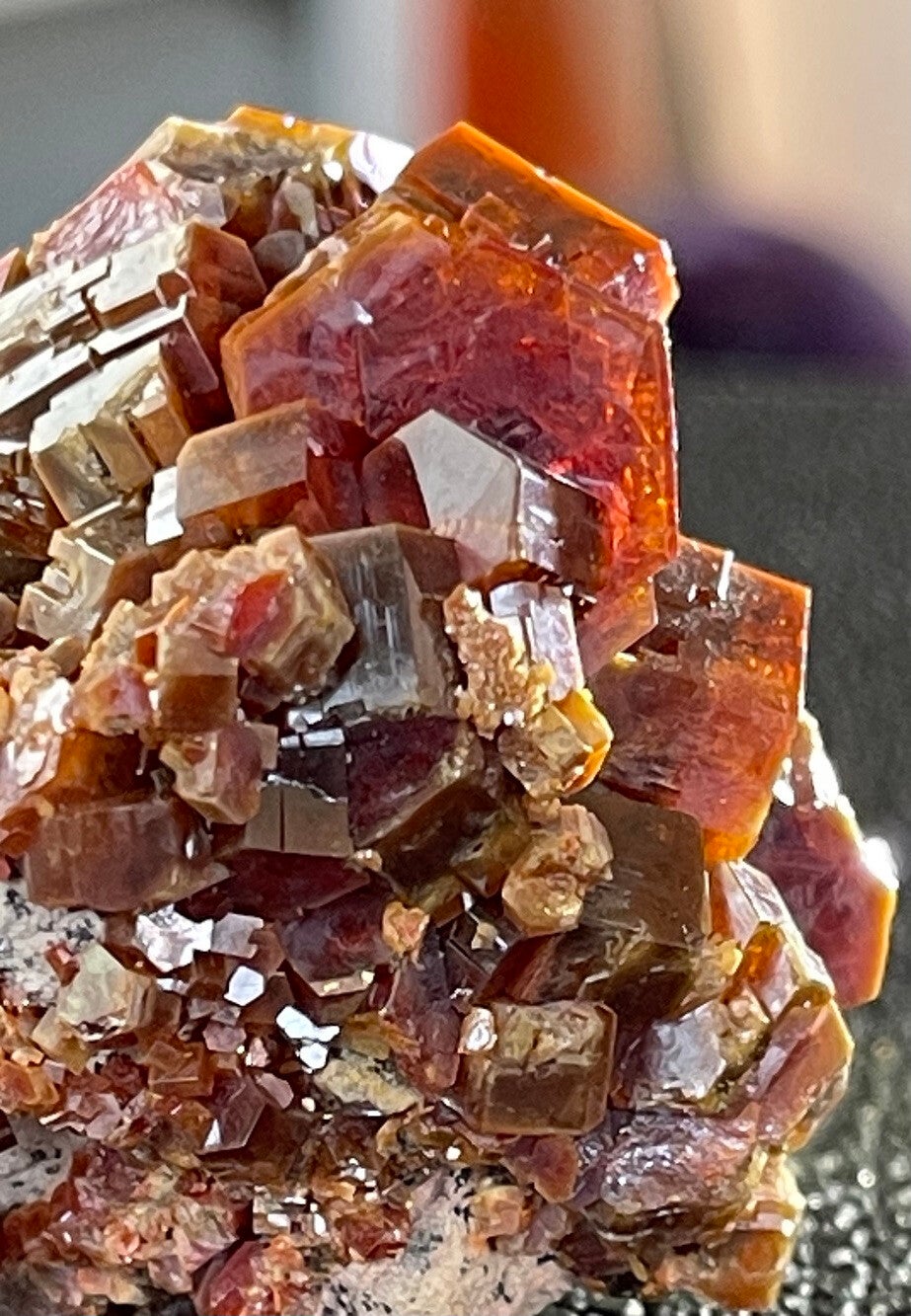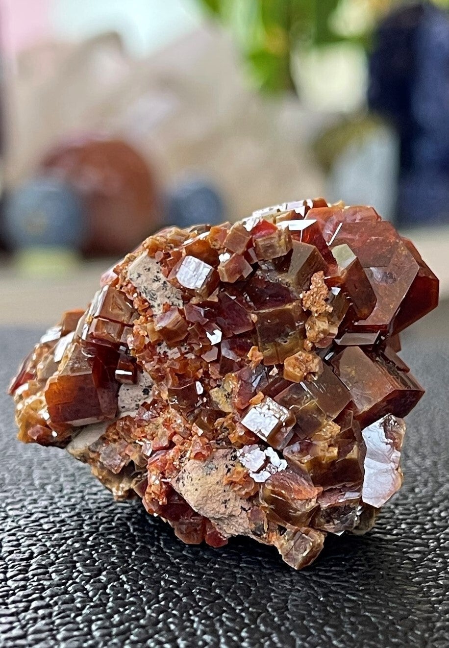 Mooi ruw stukje Vanadiniet kristal met kubusvorm op matrix uit Mibladen, Marokko, prachtige glans, klein tot medium