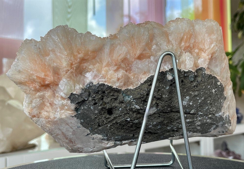 Apophylliet op Stilbiet bijzonder ruw groot stuk uit India, prachtige kleur en schitterende glinsterende kristalen