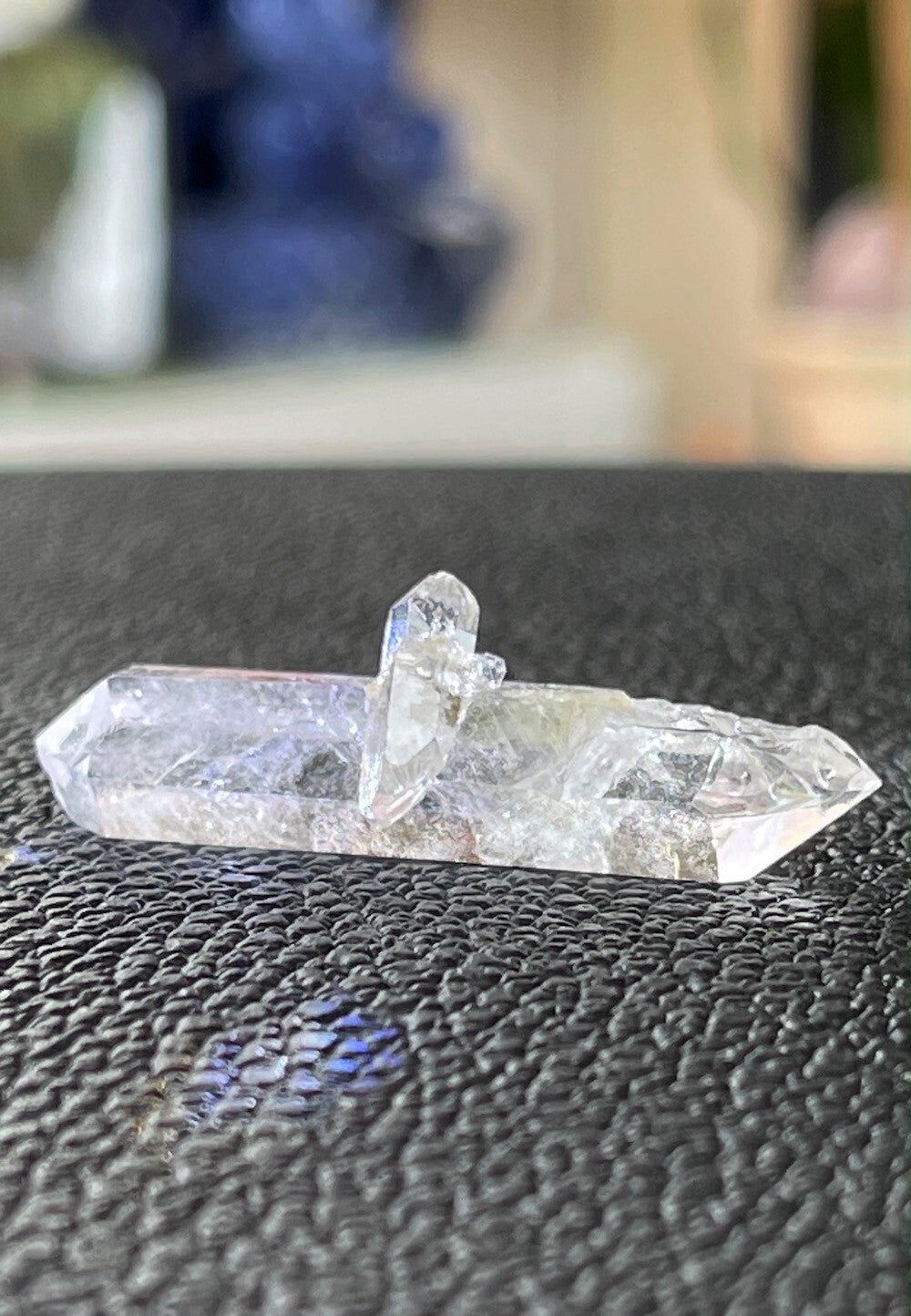 Mooie Selfhealer dubbeleinder Bergkristal punt ruw, met overdwars nog een kleine dubbeleinder punt, klein