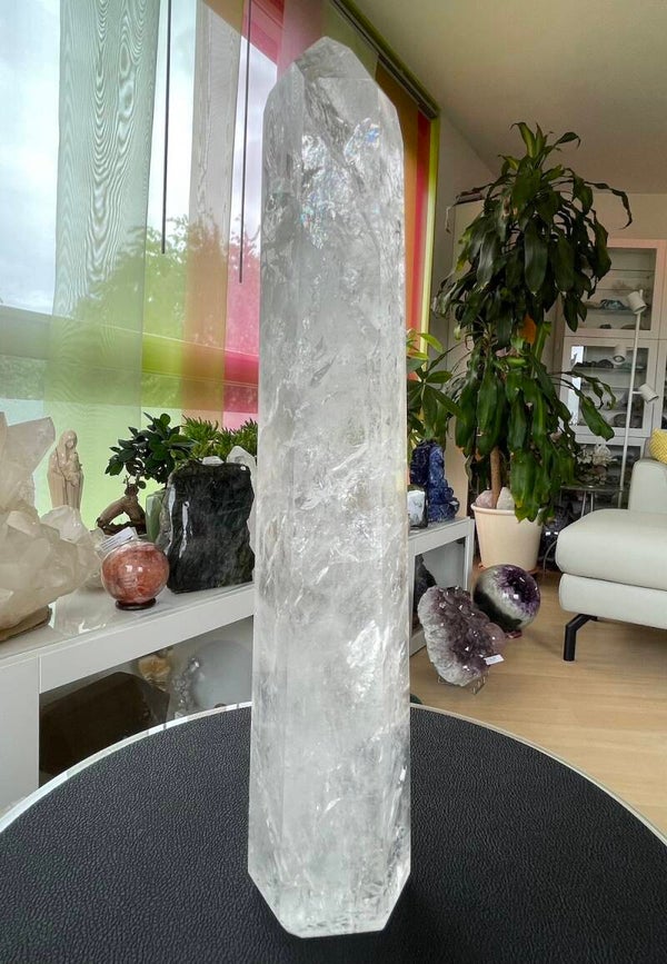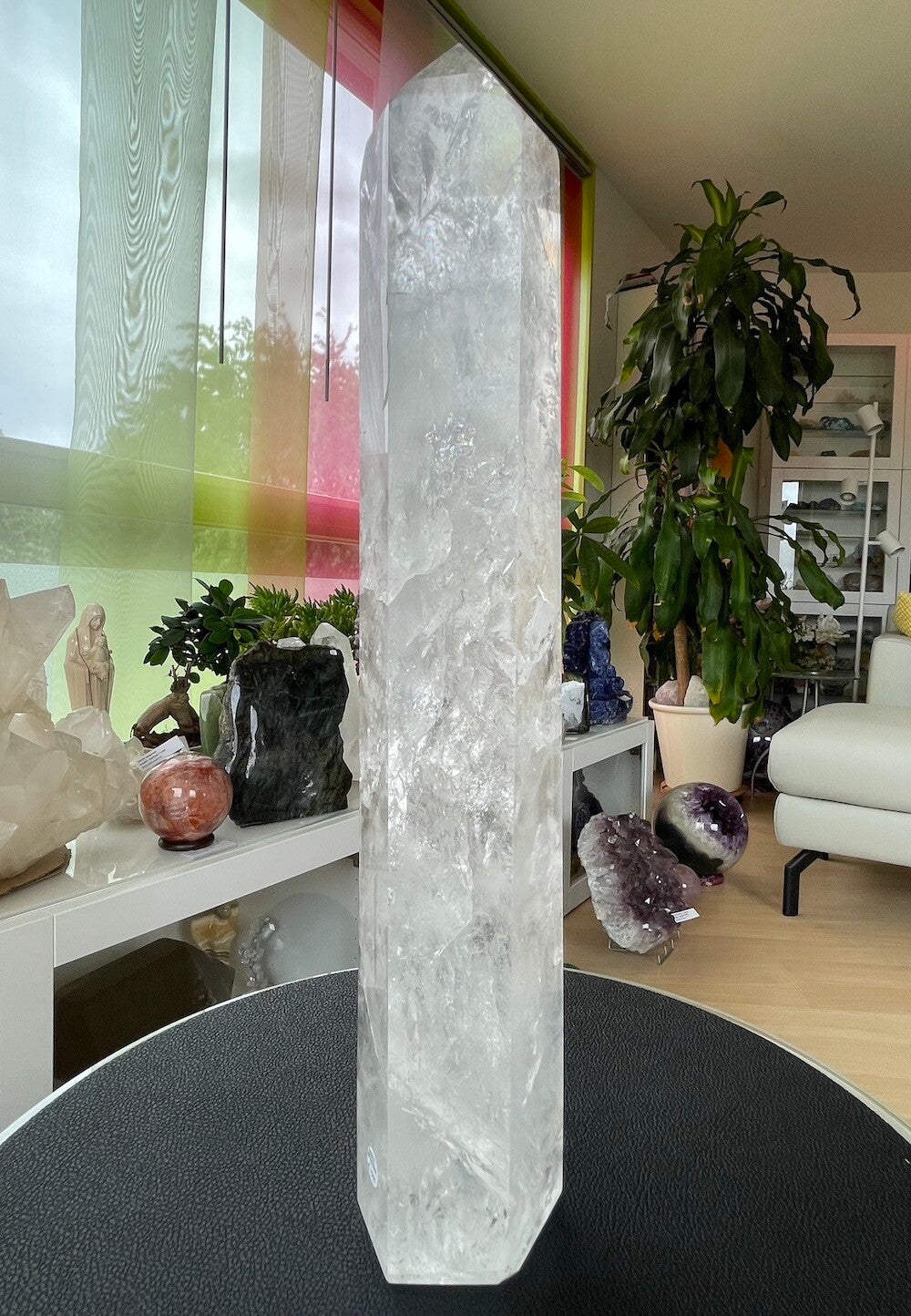 Prachtige Bergkristal gepolijste heldere punt uit Brazilië met vlakke onderkant, 6 vlakken, lang en groot