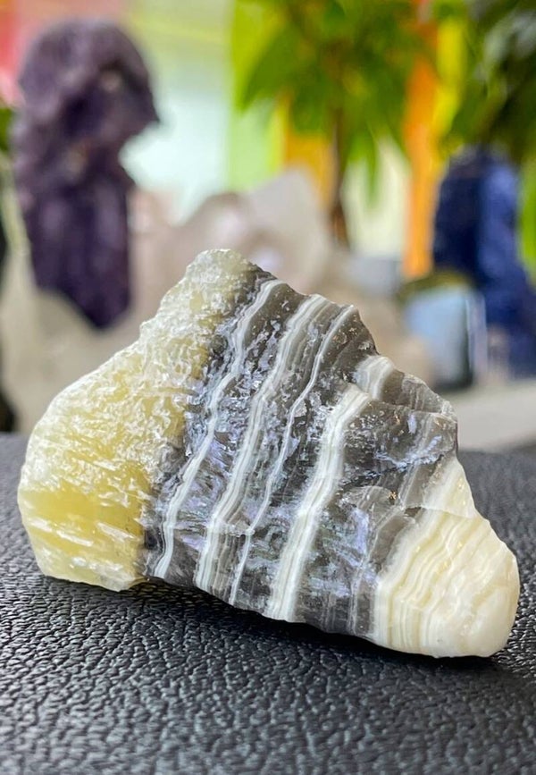 Deze combinatiesteen wordt ook Marmer Onyx, Zebra Onyx of Zebra Calciet genoemd.