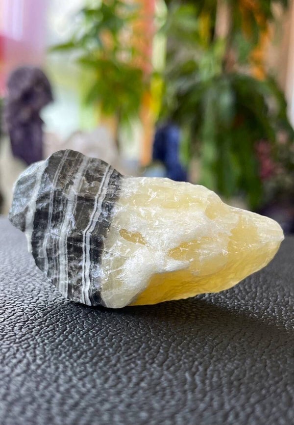 Gele Calciet heeft de algemene eigenschappen van Calciet en werkt daarnaast reinigend en vitaliserend. Het herstelt de geestelijke balans, werkt stemmingsverbeterend en heeft een positief effect op angst en neerslachtigheid.
