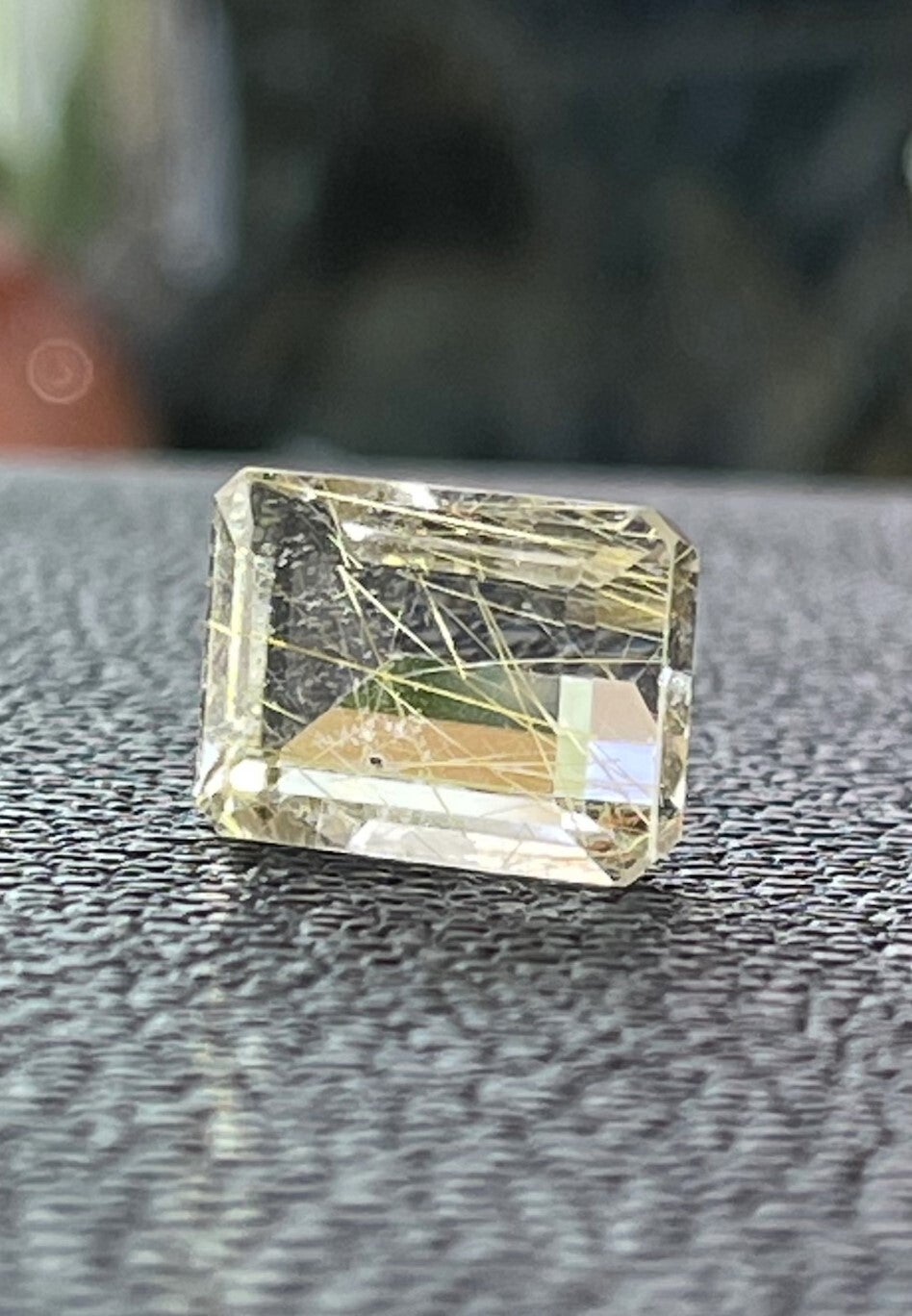 Gouden Rutielkwarts edelsteen facet geslepen smaragdvorm rechthoekig, medium-groot