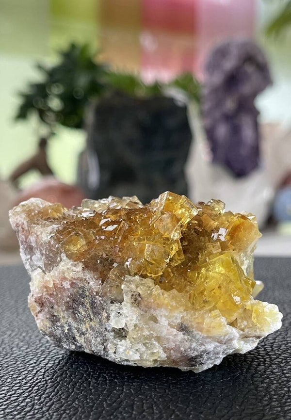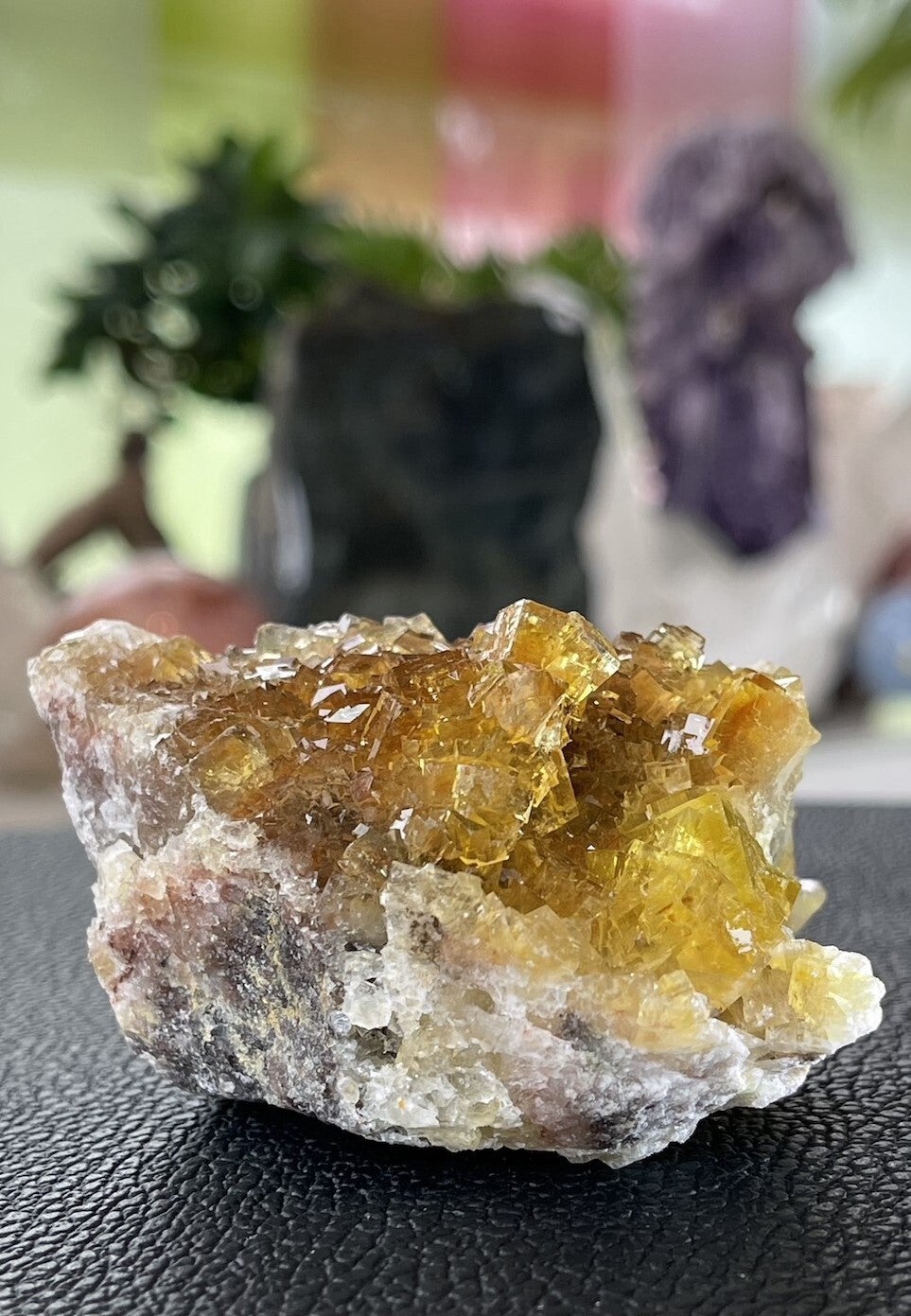 Gele Fluoriet stimuleert creativiteit en fantasie en vergroot je oplossend vermogen. Het werkt inzichtgevend, zet aan tot handelen en helpt bij het uitvoeren van plannen en projecten. De steen werkt opbeurend en helpt positief in het leven staan.