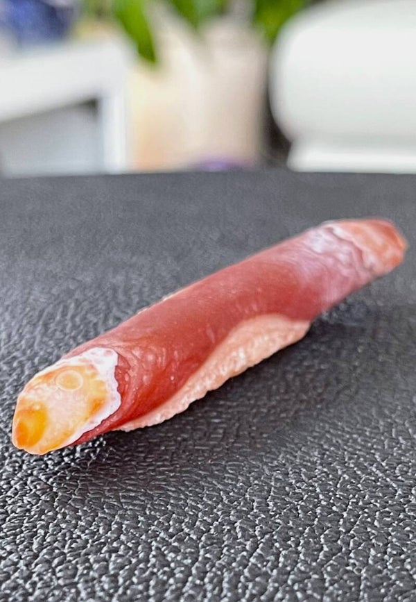 Heel bijzonder ruw staafje Carneool rondom gekristalliseerde dubbeleinder punt, medium