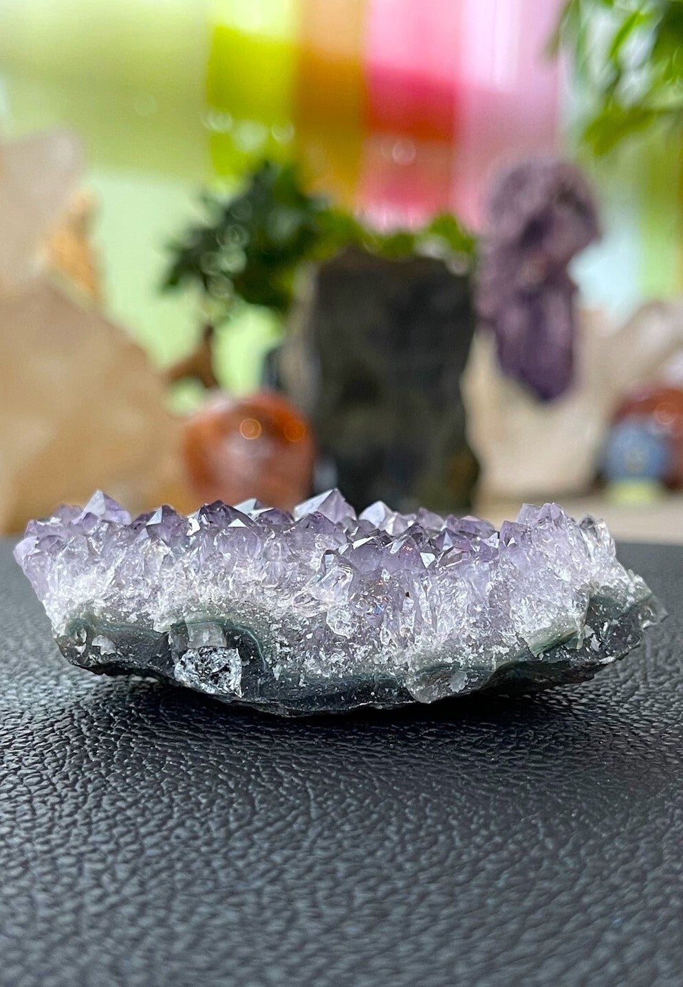 Amethist is vanwege haar reinigende werking ook heel geschikt om een ruimte te zuiveren. Samen met Bergkristal en Rozenkwarts creëert het een harmonische sfeer. Omdat het de bovenste chakra’s stimuleert, kan het de intuïtie, spirituele groei en inzichten bevorderen, zeker voor mensen die aan het begin staan van hun spirituele pad.