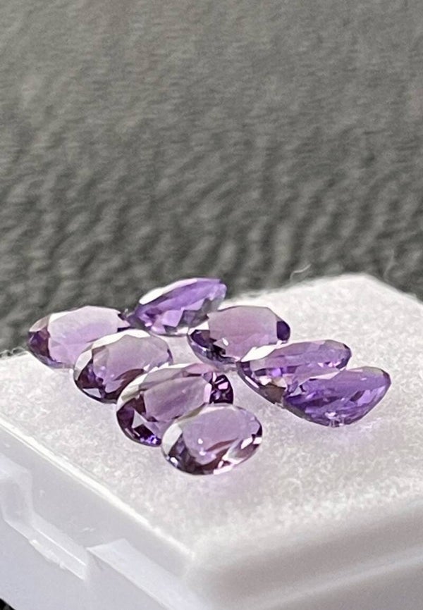 Amethist edelsteen facet geslepen ovaal, set van 8 stuks, klein
