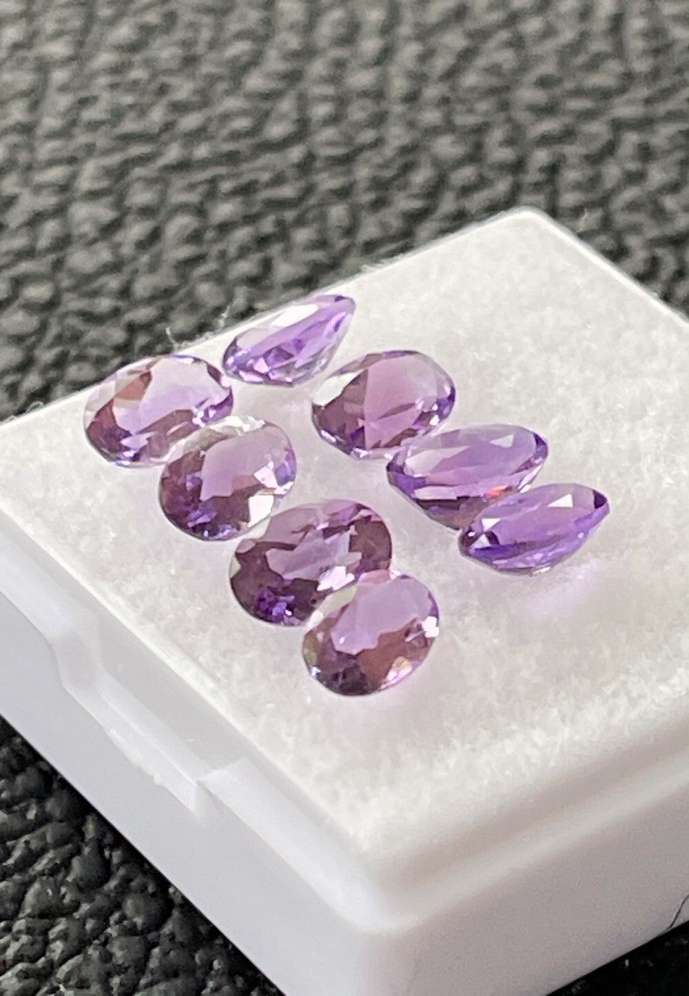 Amethist edelstenen facet geslepen ovaal, set van 8 stuks in doosje, klein