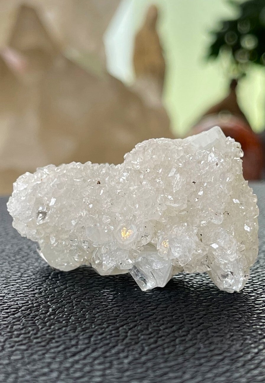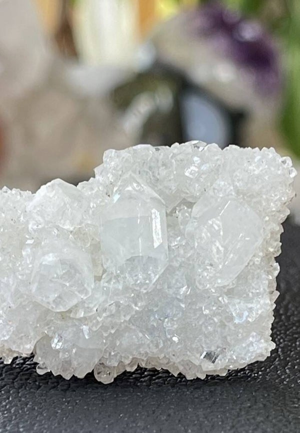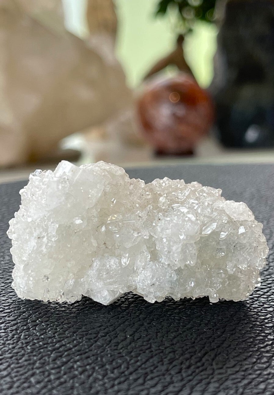 Apofylliet is ook een hele spirituele steen. Het helpt bij de geleiding van energieën en kan daarom heel goed gebruikt worden bij healings en energetisch werk zoals bijvoorbeeld reiki en quantum touch. Mediteren met deze steen geeft spirituele inzichten en kennis. Het werkt aardend bij astraal reizen.