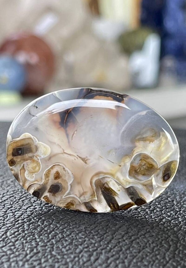 Prachtige Agaat edelsteen uit Chubock Turkije met vlakke achterkant, cabochon ovaal, mooie kwaliteit en heel apart, groot