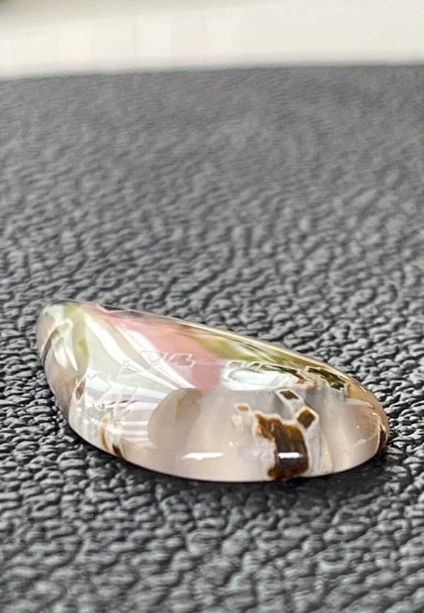 Prachtige Agaat edelsteen uit Chubock Turkije met insluiting en vlakke achterkant, cabochon druppel, mooie kwaliteit en heel apart, medium