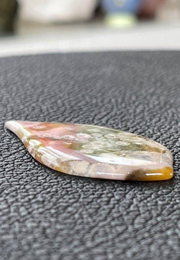 Prachtige Agaat edelsteen met open deeltjes en vlakke achterkant uit Chubock Turkije, cabochon free form, groot
