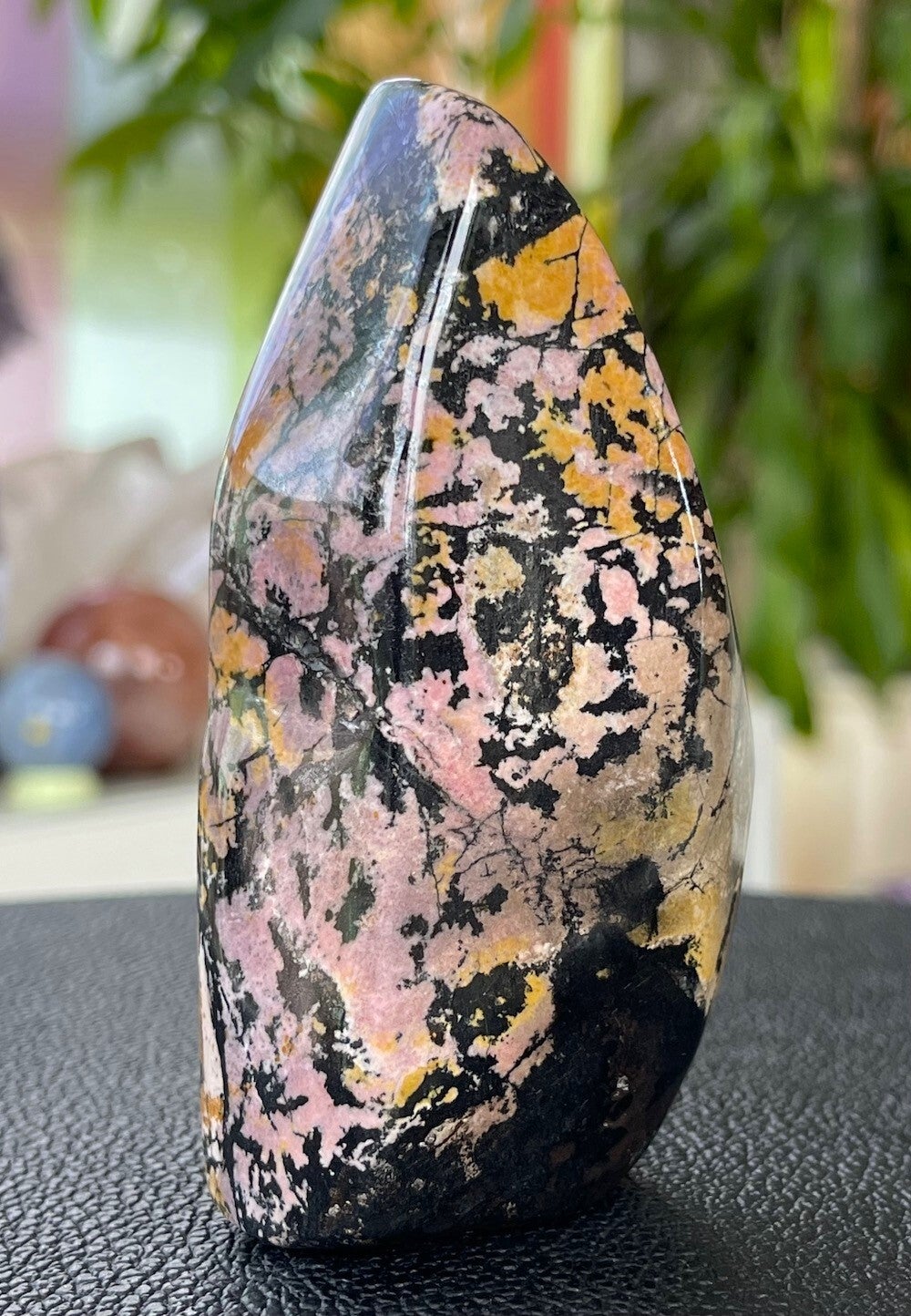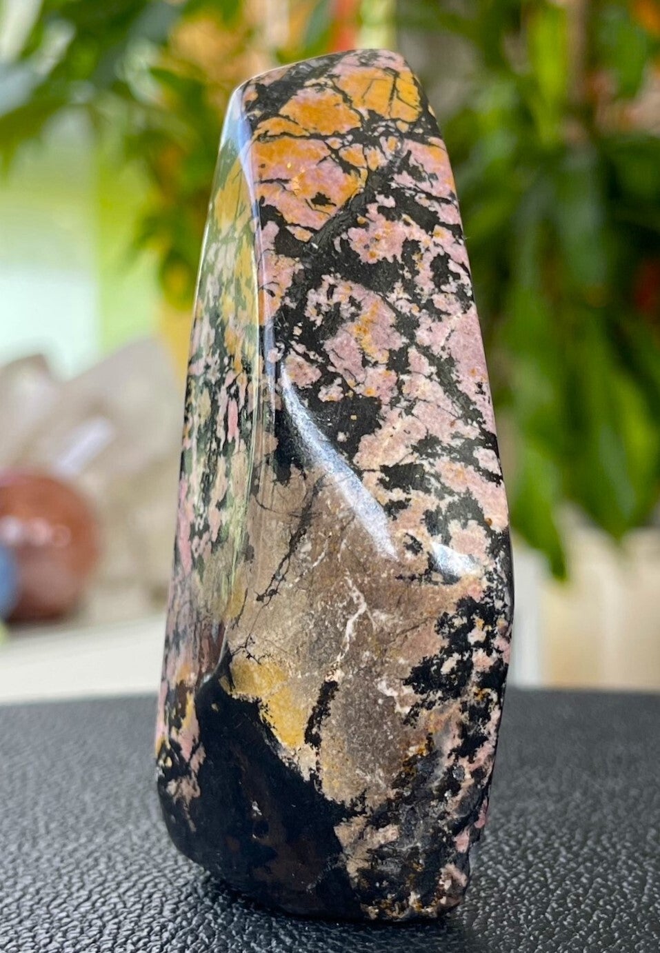 Rhodoniet free form sculptuur, gepolijst, kan staan, medium